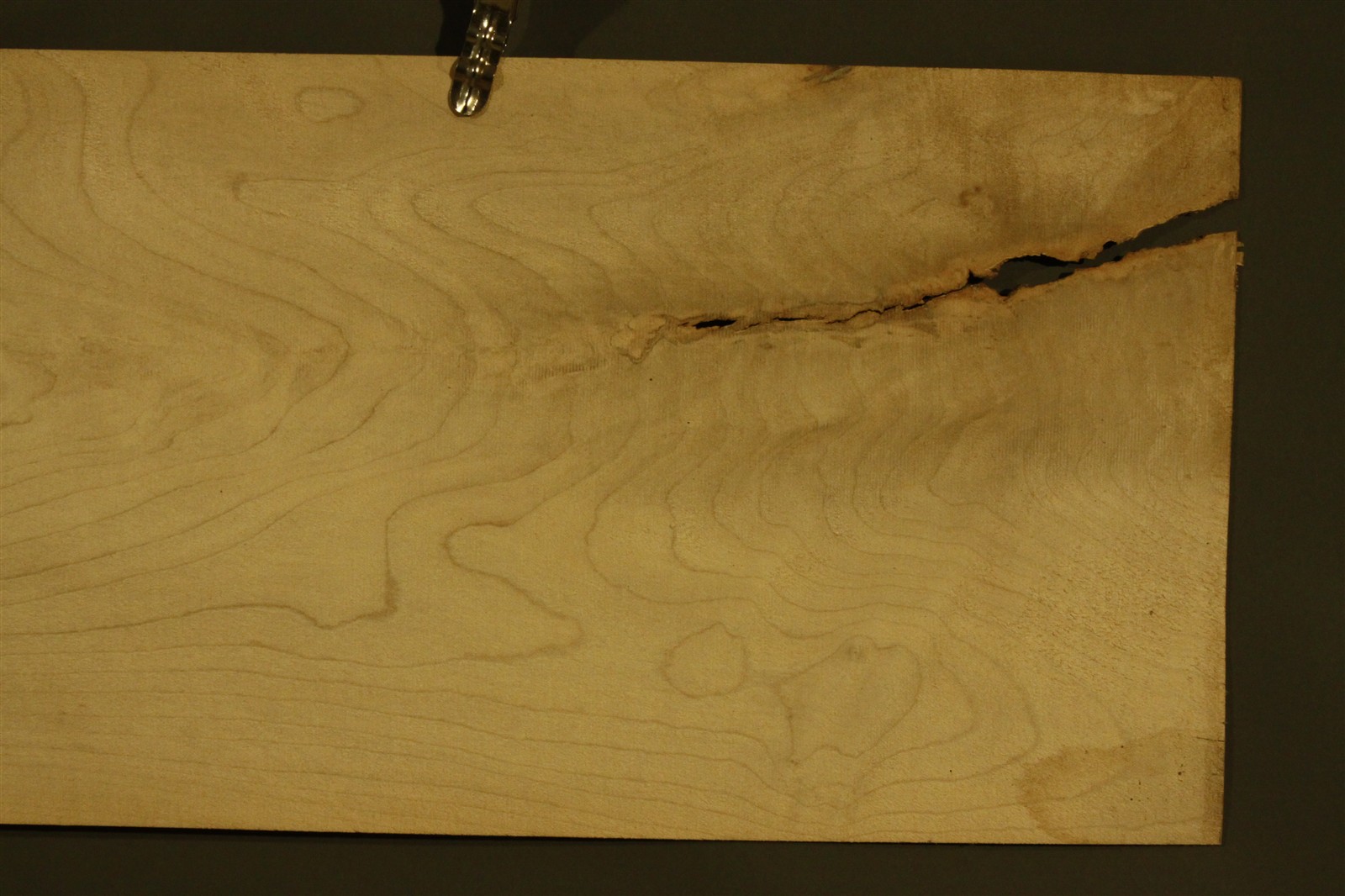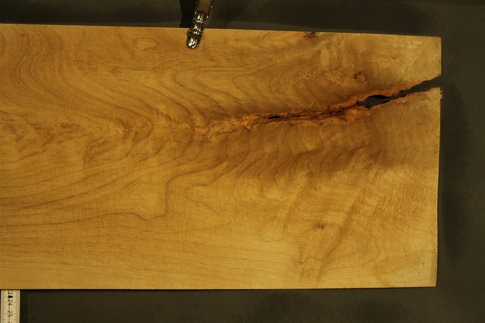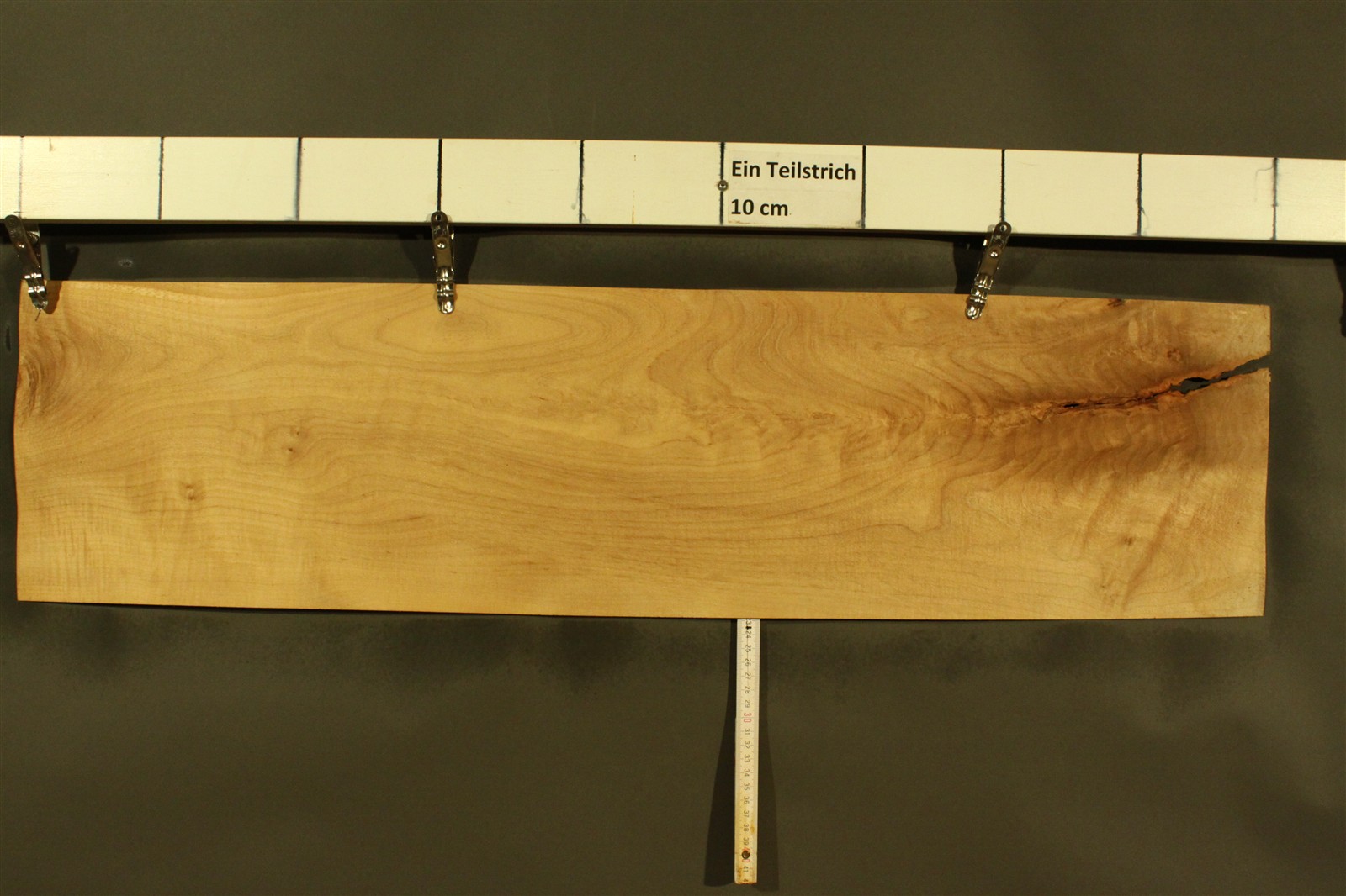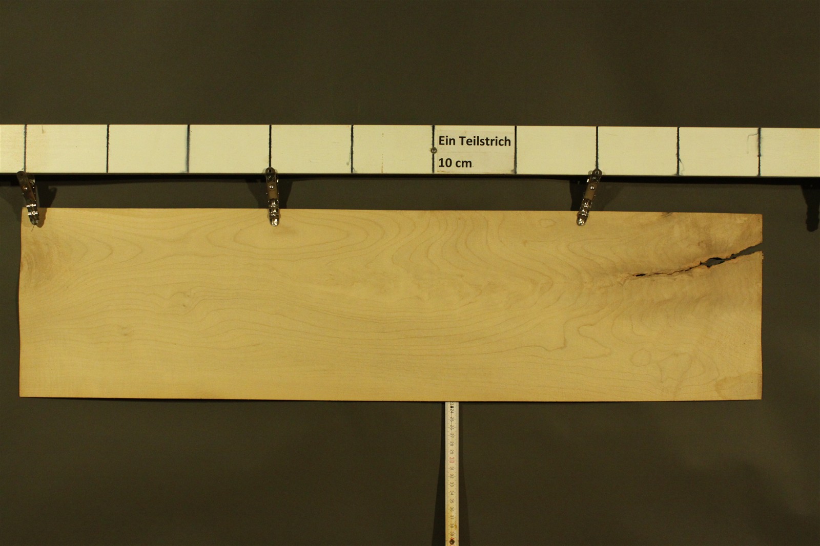 Ahorn-Furnier in 1,5 mm Stärke mit den Maßen 92 x 23 cm und Sägeschnitt.