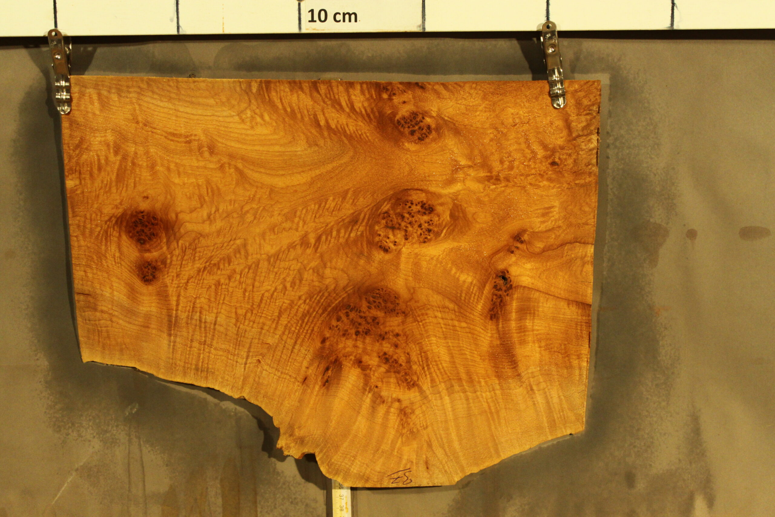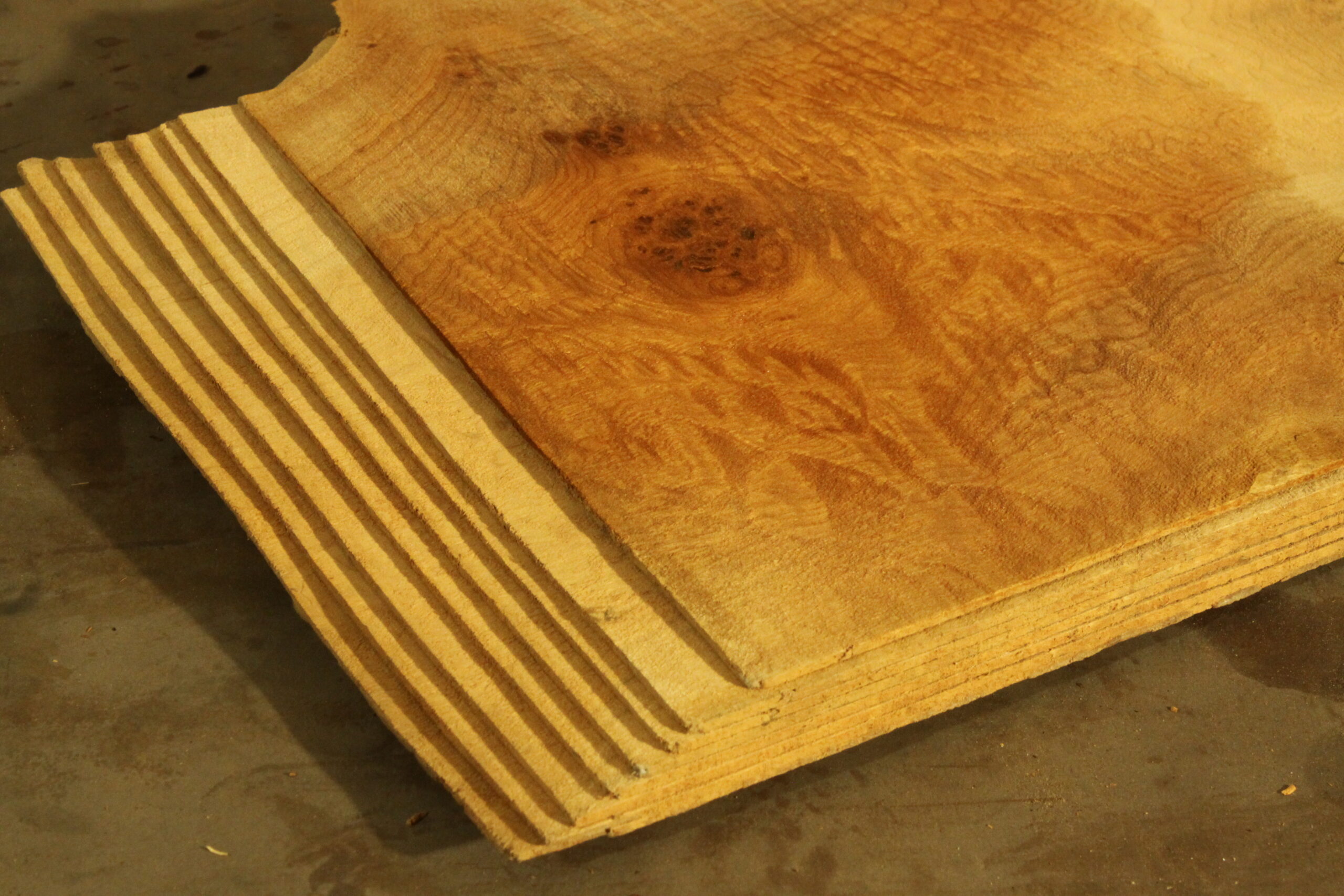 Ahorn-Maser-Furnier in 2,5 mm Stärke mit den Maßen 43 x 30 cm. Der angegebene Preis bezieht sich auf ein einzelnes Blatt des abgebildeten Pakets.
