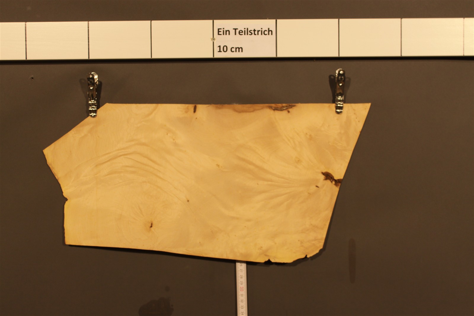 Holz ist ein Naturprodukt. Die Blätter aus einem Furnier-Paket weisen daher einen natürlichen Verlauf in Farbe und Muster auf; kein Blatt gleicht dem anderen. Die Abbildungen sind daher als Auszüge des Furnier-Pakets zu verstehen und bilden i.d.R. nur einzelne Blätter des Gesamtpakets ab.