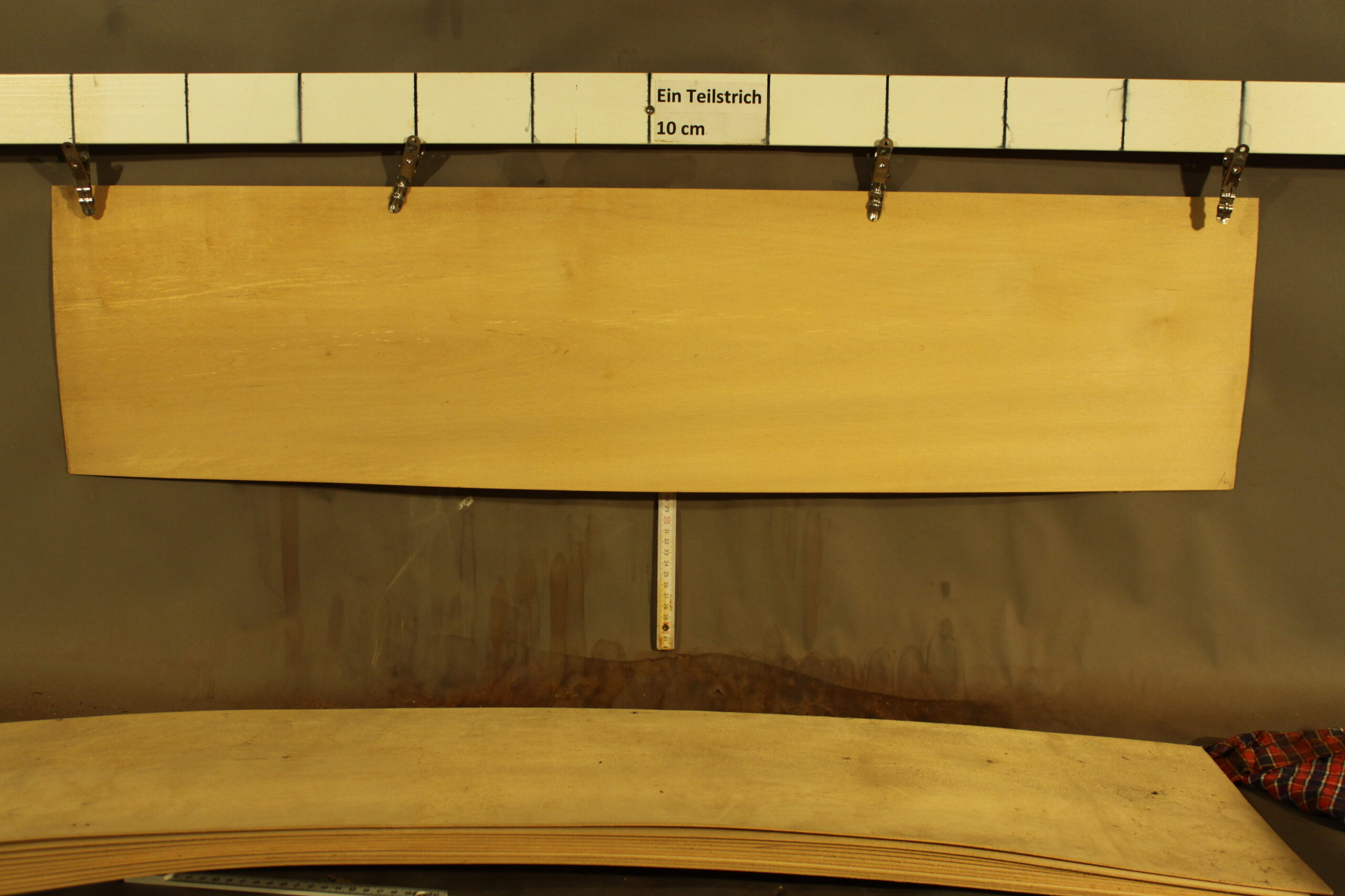 Birke-Furnier in 1,5 mm Stärke mit den Maßen 105 x 25 cm und Sägeschnitt. Der angegebene Preis bezieht sich auf ein einzelnes Blatt des abgebildeten Pakets.