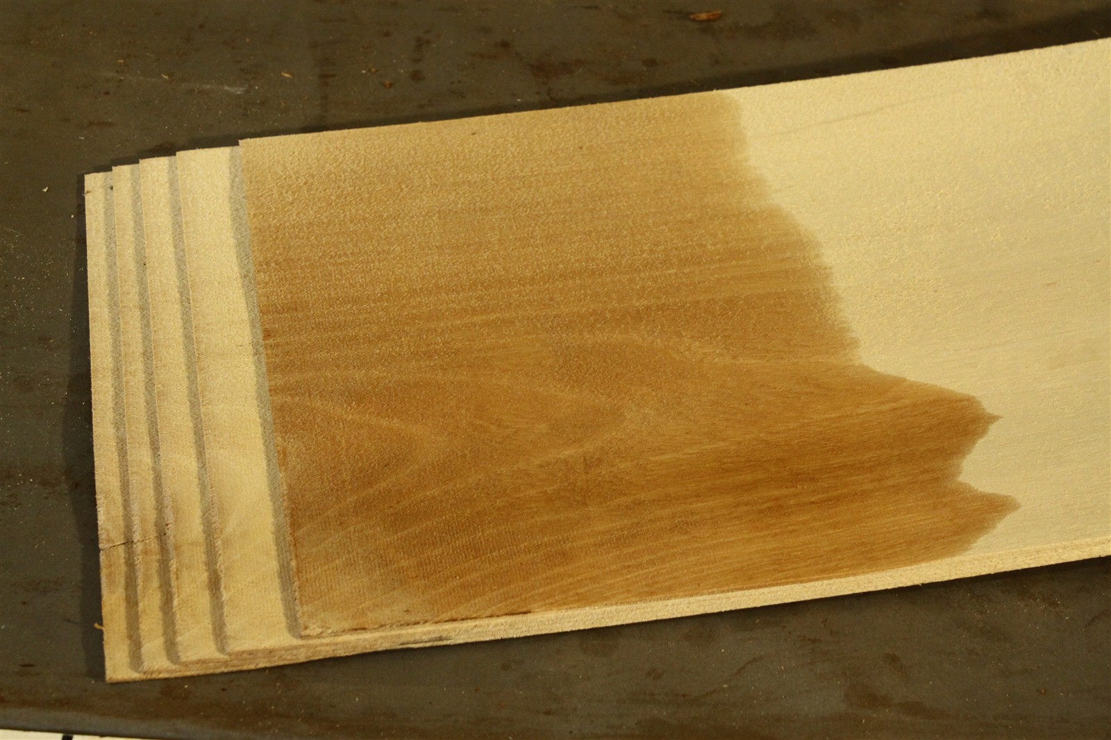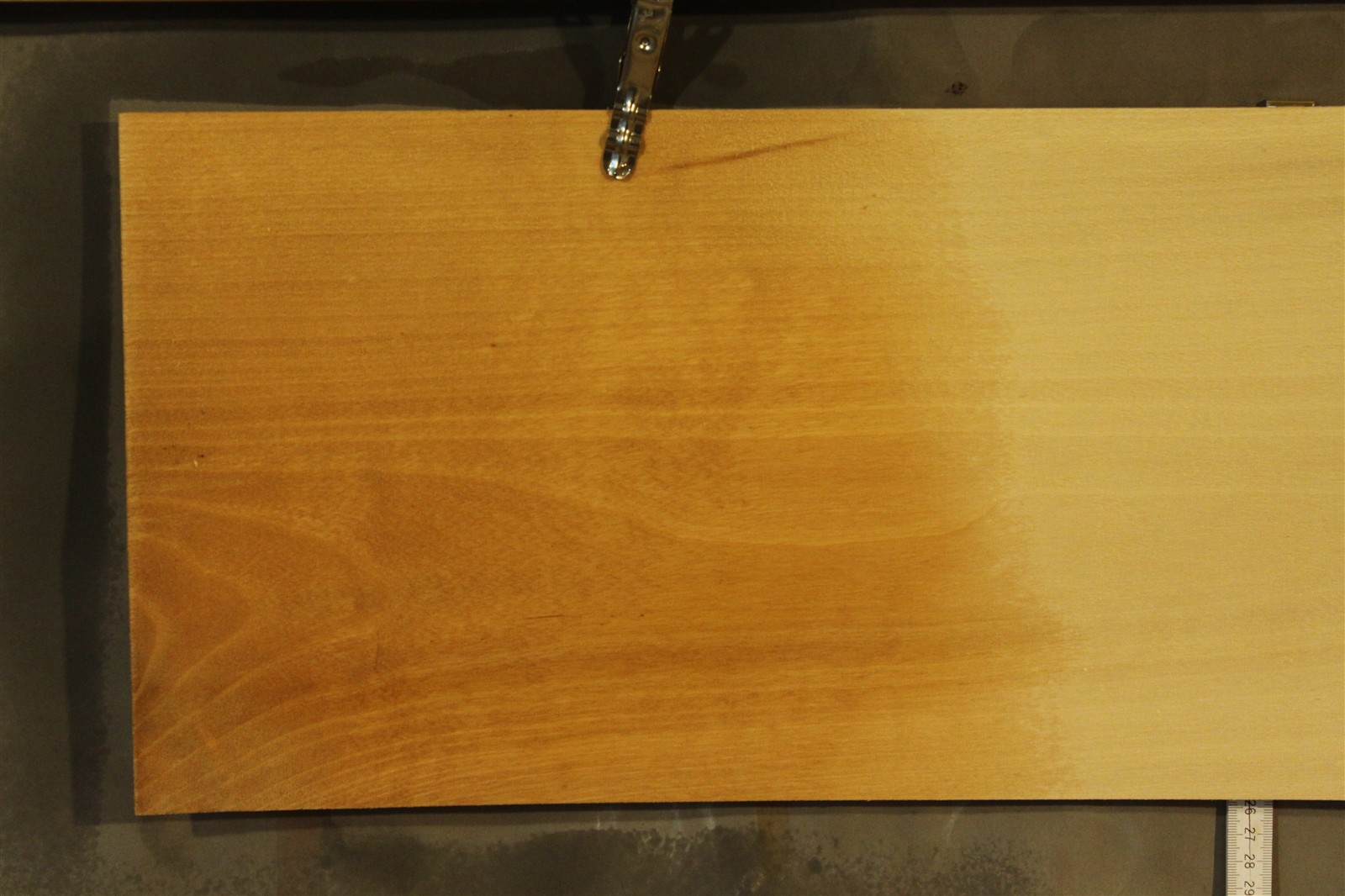 Birke-Furnier in 1,5 mm Stärke mit den Maßen 75 x 25 cm und Sägeschnitt. Der angegebene Preis bezieht sich auf ein einzelnes Blatt des abgebildeten Pakets.