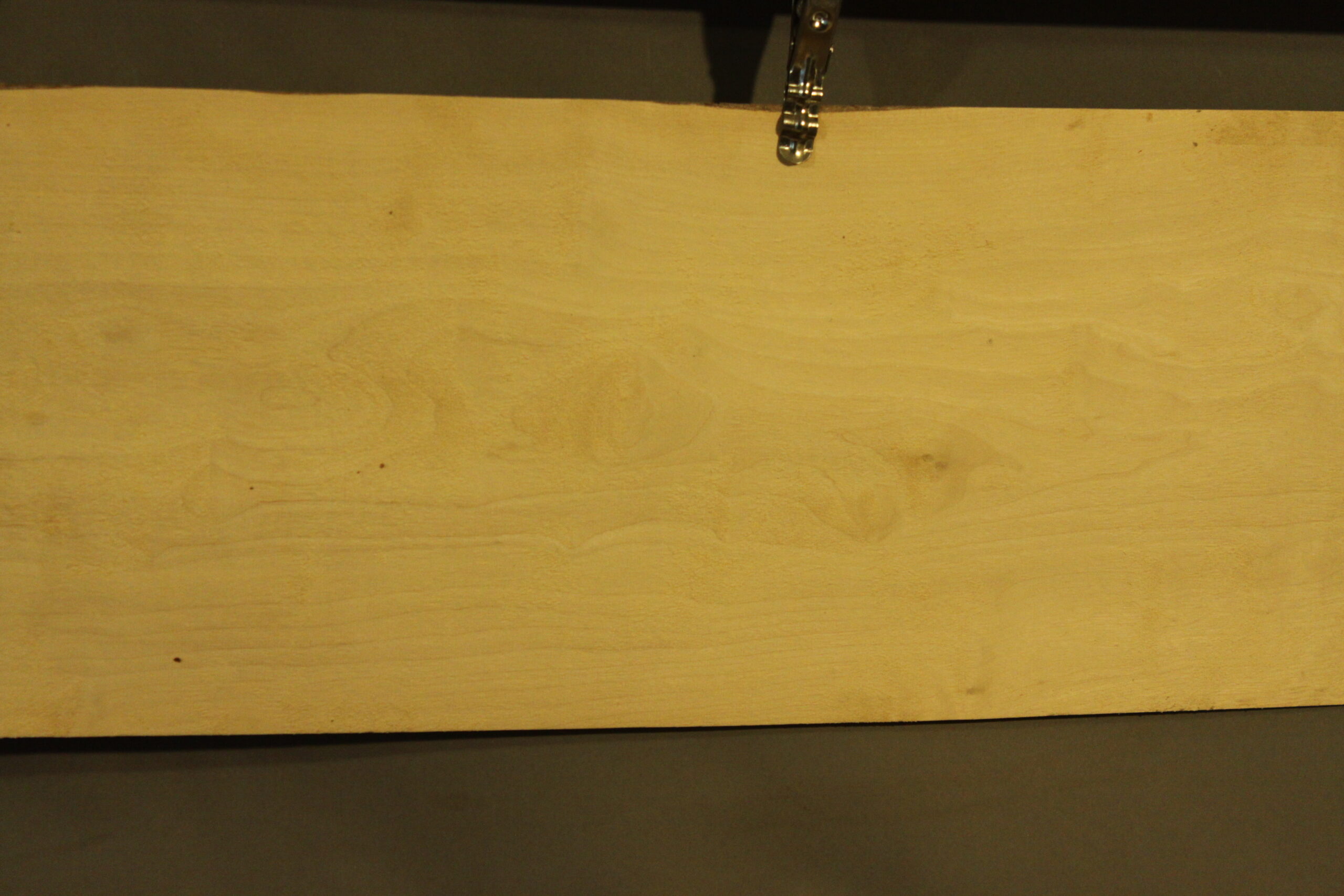 Birke-Furnier mit leichten Wirbeln (Eisbirke) in 1,5 mm Stärke mit den Maßen 115 x 21 cm und Sägeschnitt.