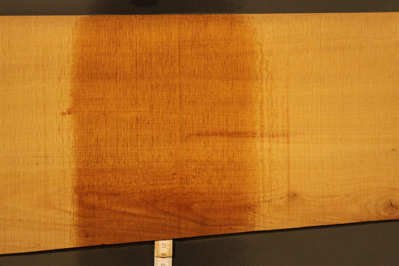 Birnbaum-Furnier in 3,5 mm Stärke mit einer Länge von 78 cm und einer Breite von 20 cm.