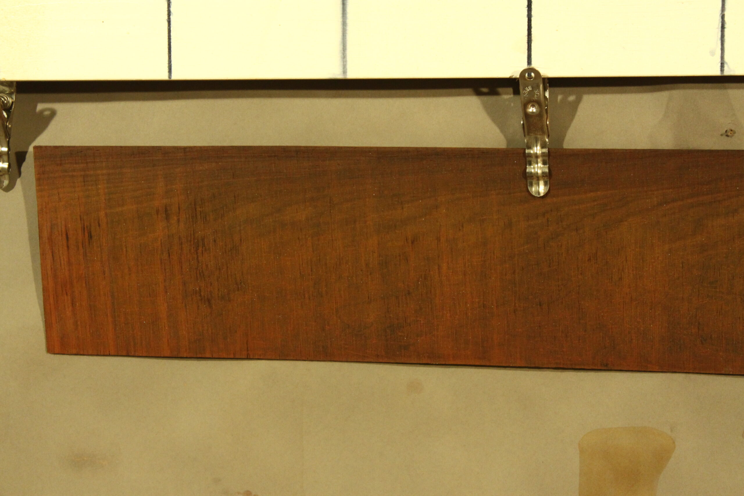 Cocobolo-Furnier in 2,5 mm-Stärke mit einer Länge von 93 cm, einer Breite von 12 cm sowie grobem Sägeschnitt. Das Furnier weist eine extra lange Langezeit von über 10 Jahren auf.