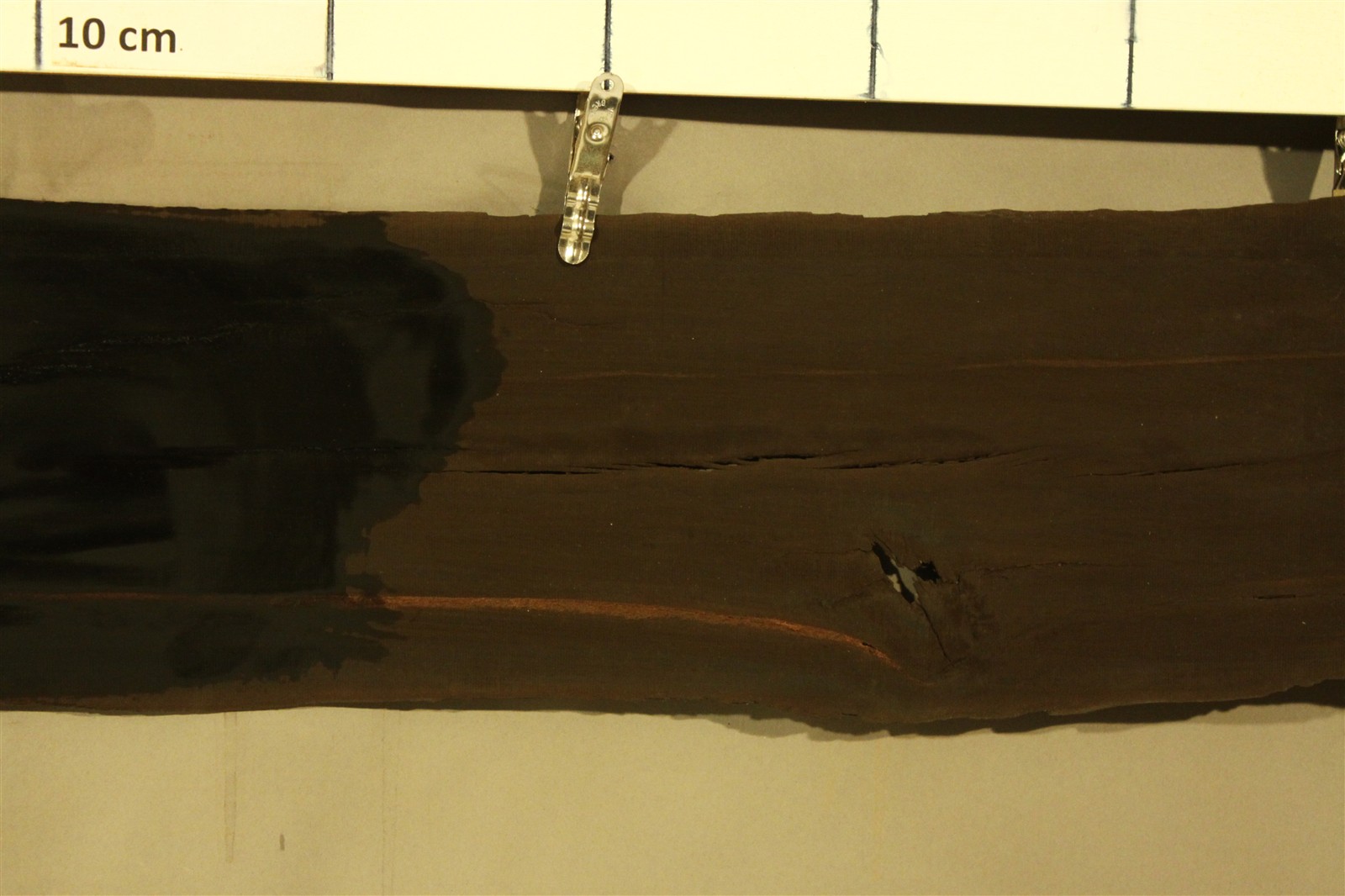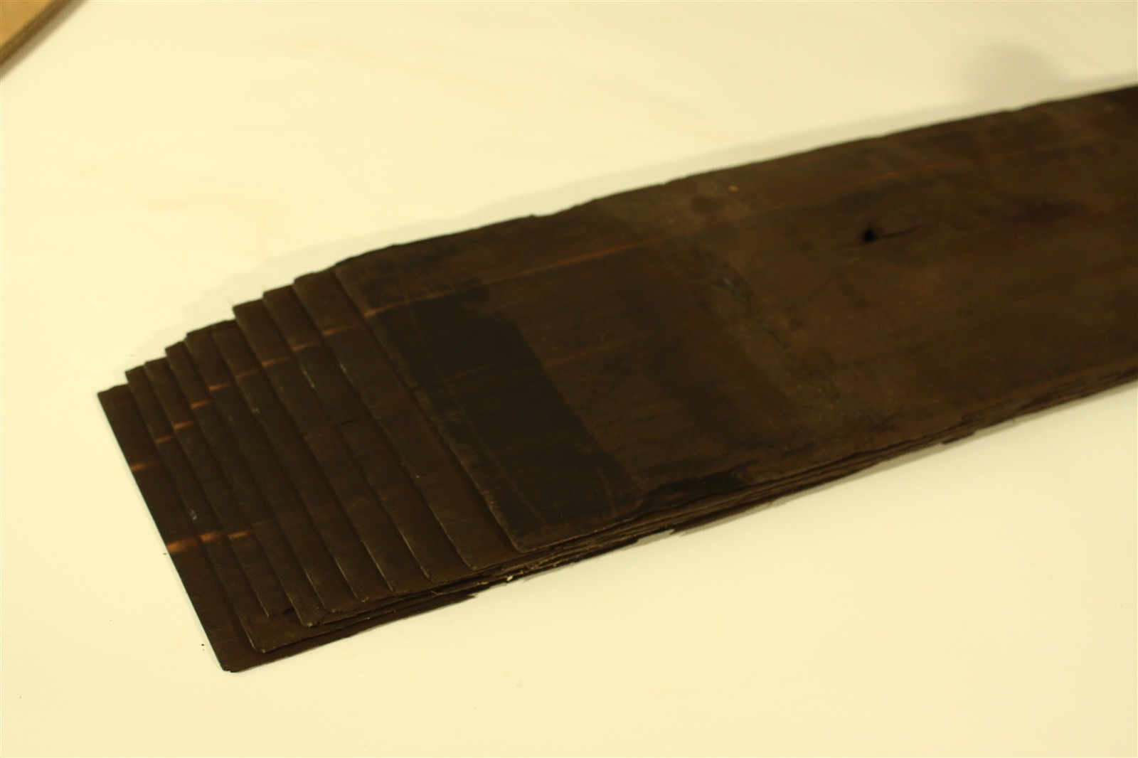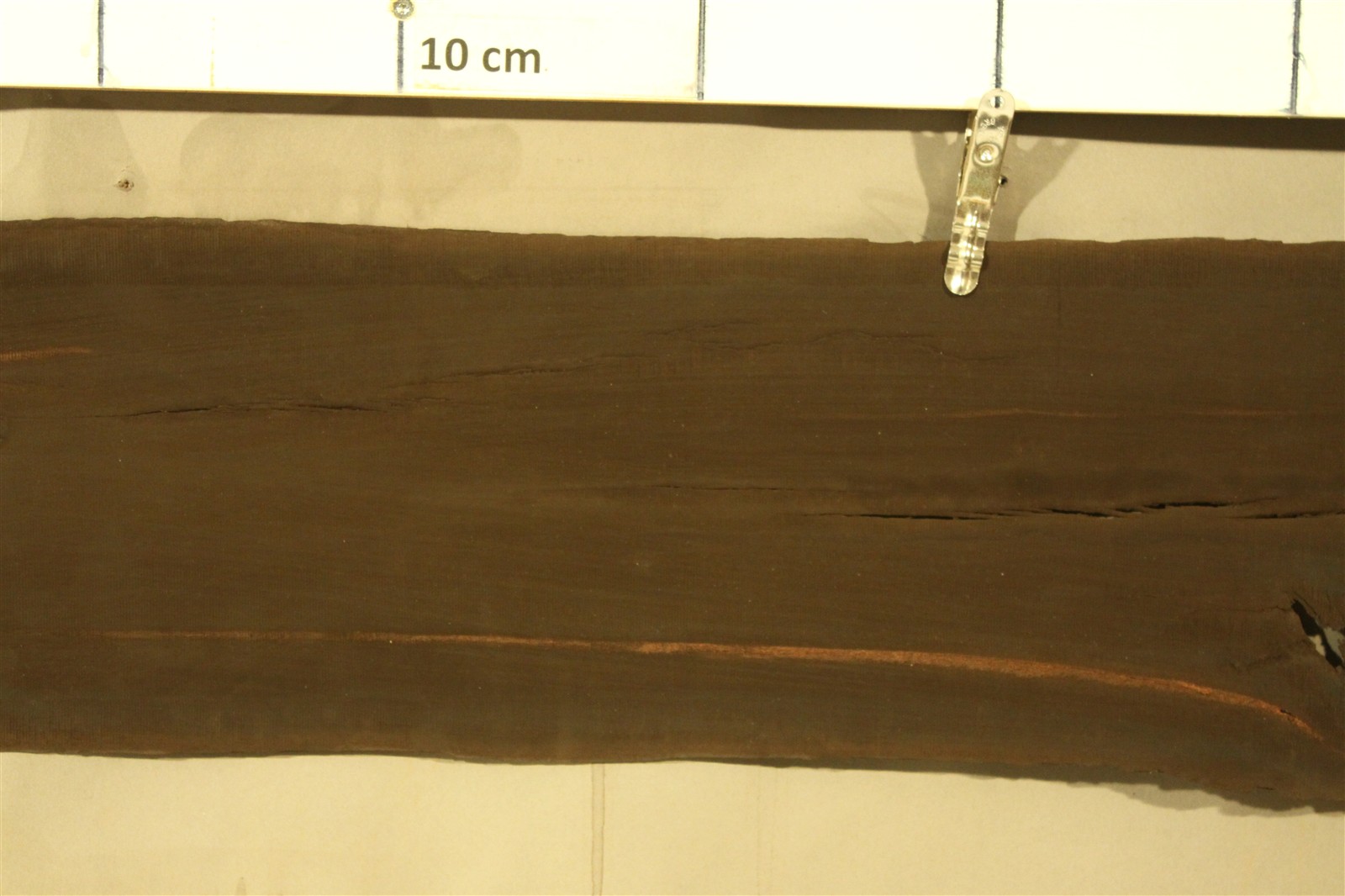 Ebenholz-Furnier in 1,5 mm-Stärke mit einer Länge von 110 cm, einer Breite von 16 cm und feinem Sägeschnitt.