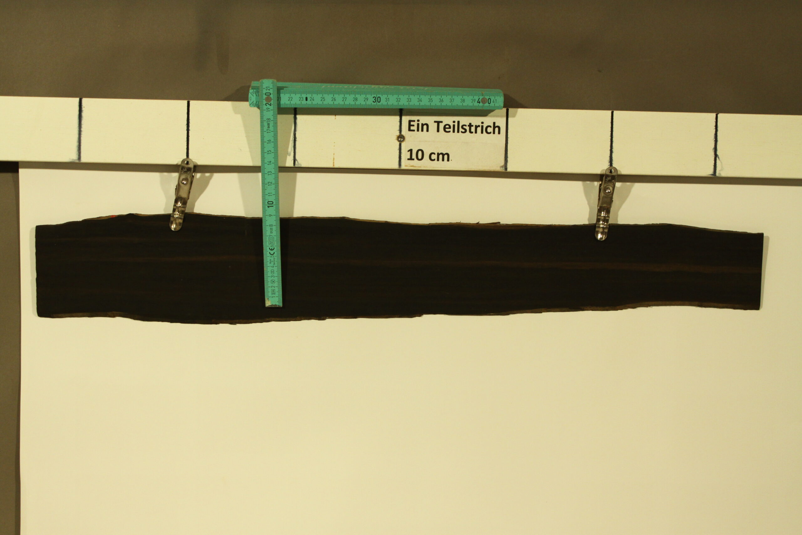Ebenholz-Furnier in 3 mm-Stärke mit einer Länge von 68 cm, einer Breite von 8 cm und feinem Sägeschnitt.
