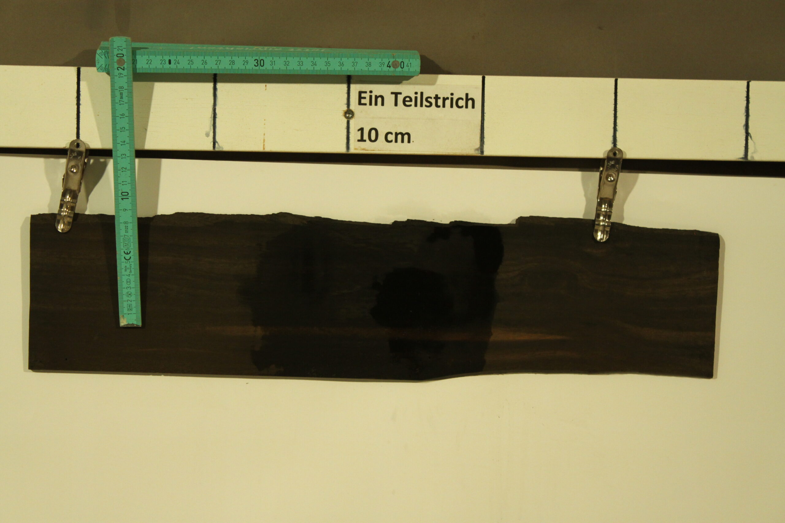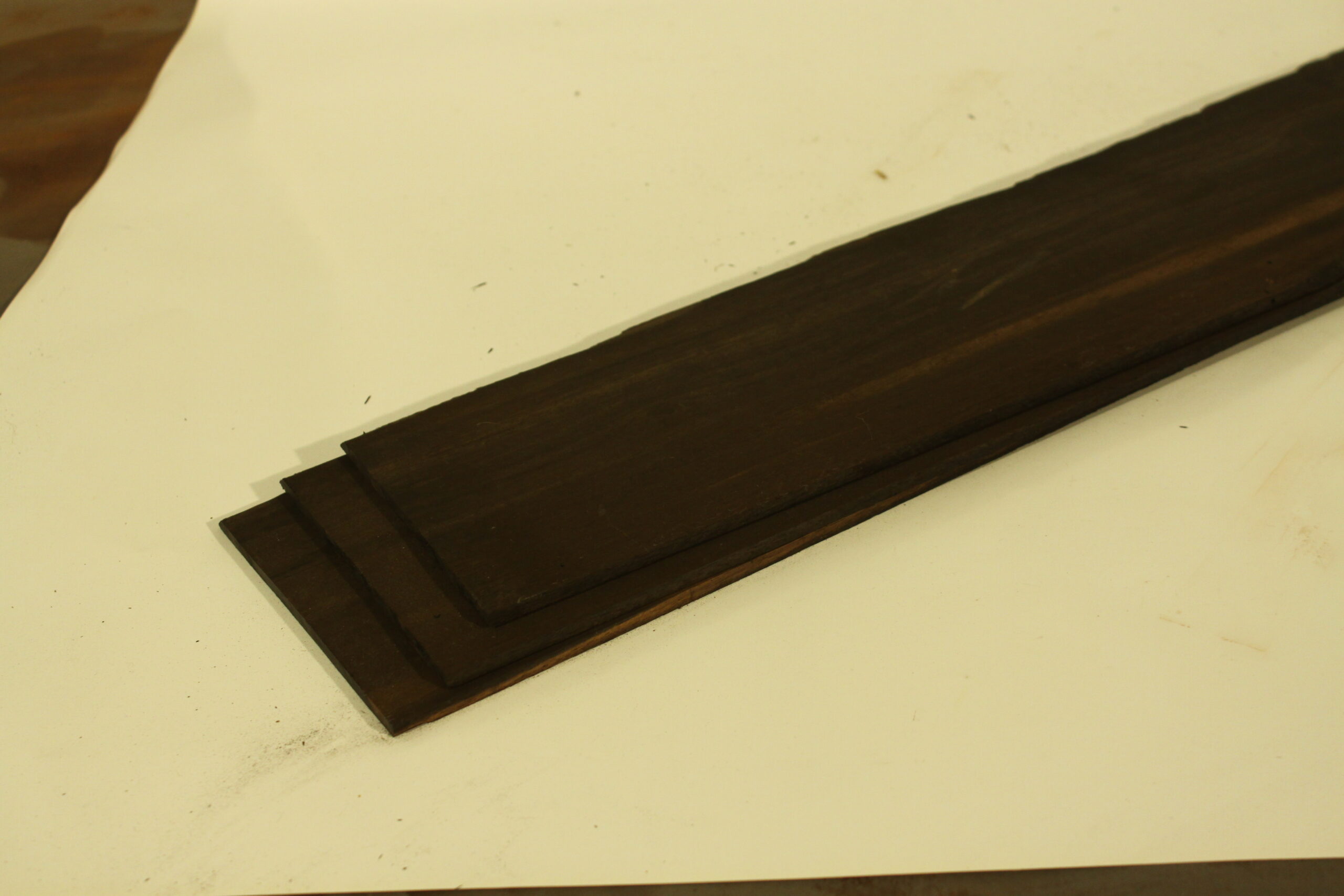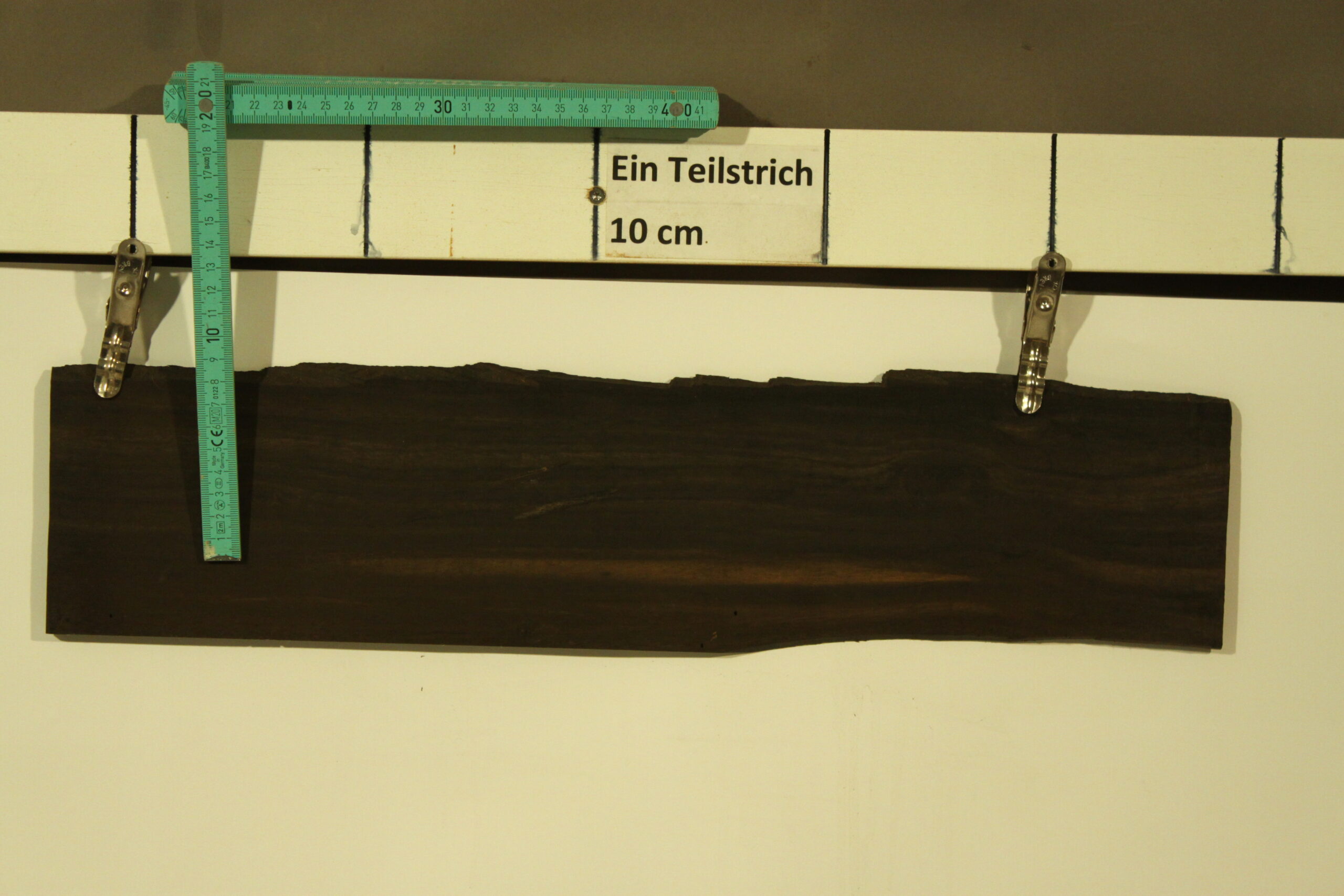 Ebenholz-Furnier in 5 mm-Stärke mit einer Länge von 50 cm und einer Breite von 11 cm sowie feinem Sägeschnitt.