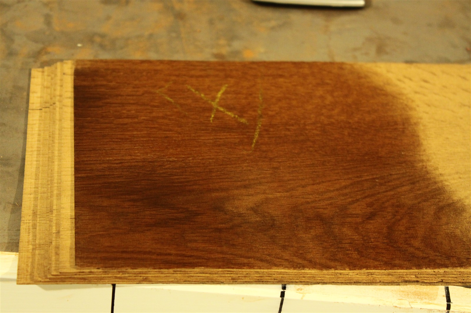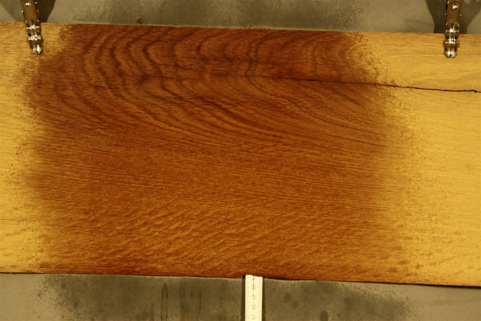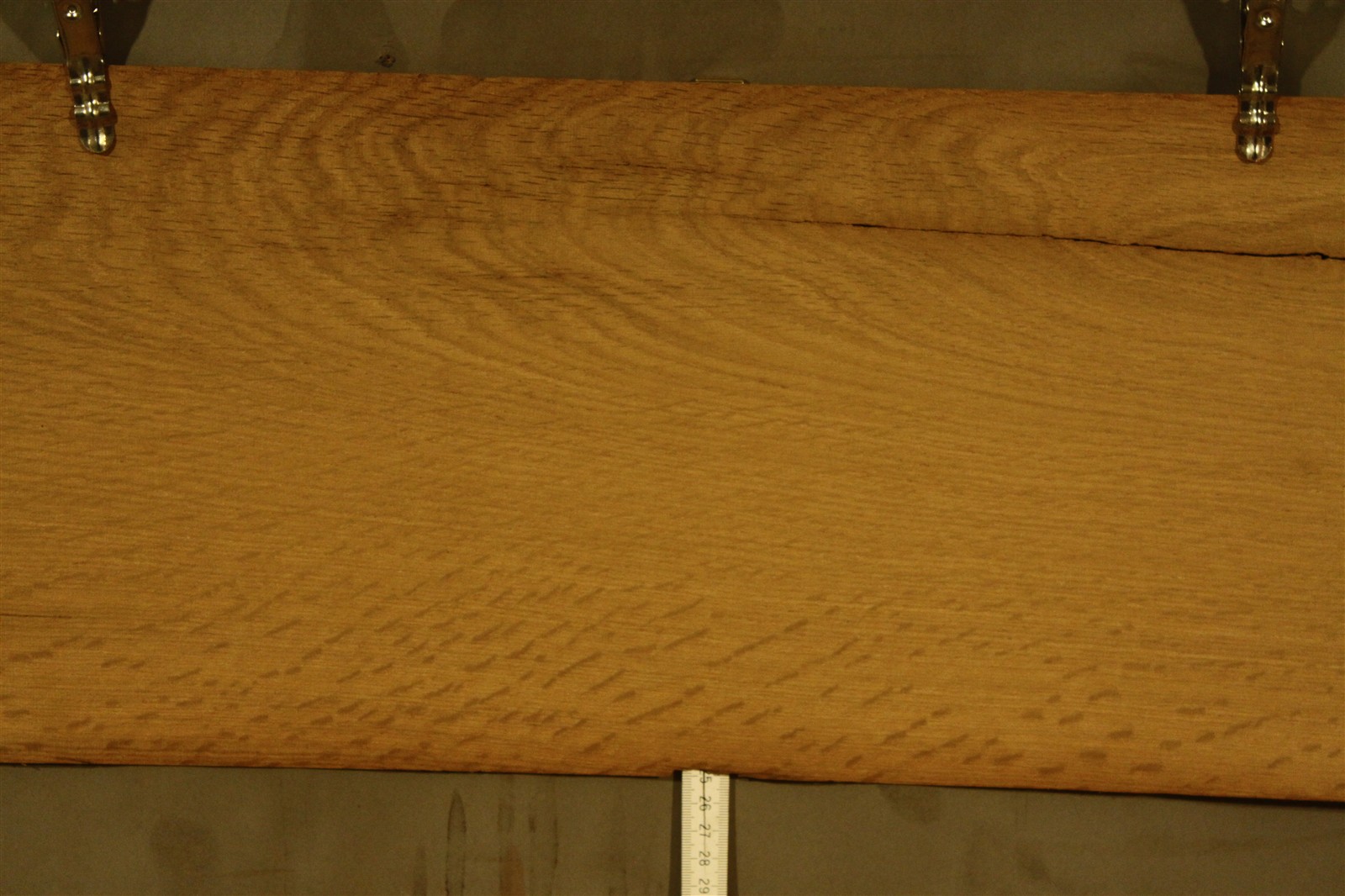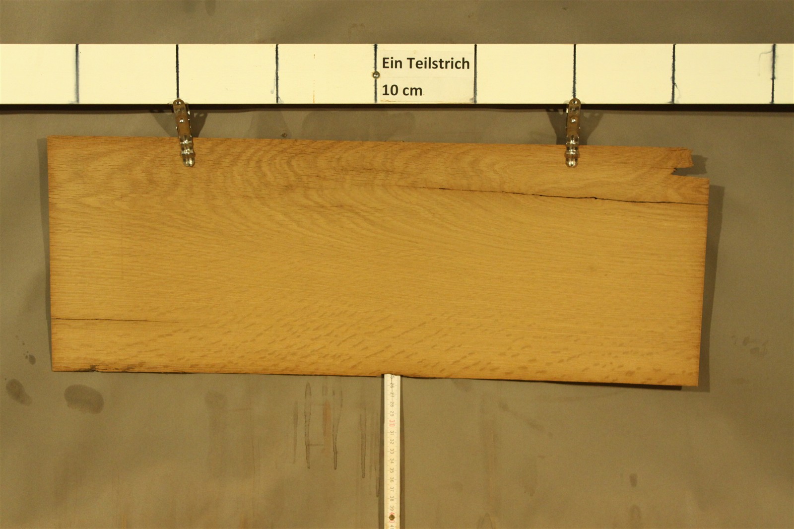 Eiche-Furnier alt in 1,2 mm Stärke mit einer Länge von 65 cm und einer Breite von 20 cm.