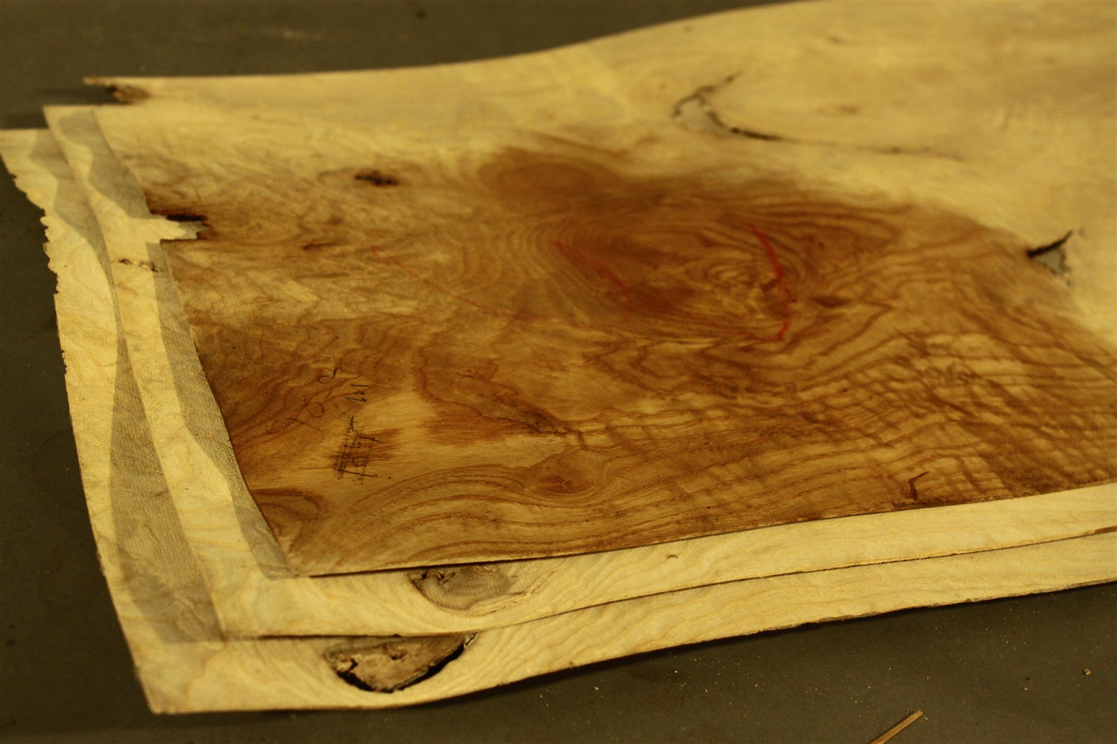 Holz ist ein Naturprodukt. Die Blätter aus einem Furnier-Paket weisen daher einen natürlichen Verlauf in Farbe und Muster auf; kein Blatt gleicht dem anderen. Die Abbildungen sind daher als Auszüge des Furnier-Pakets zu verstehen und bilden i.d.R. nur einzelne Blätter des Gesamtpakets ab.