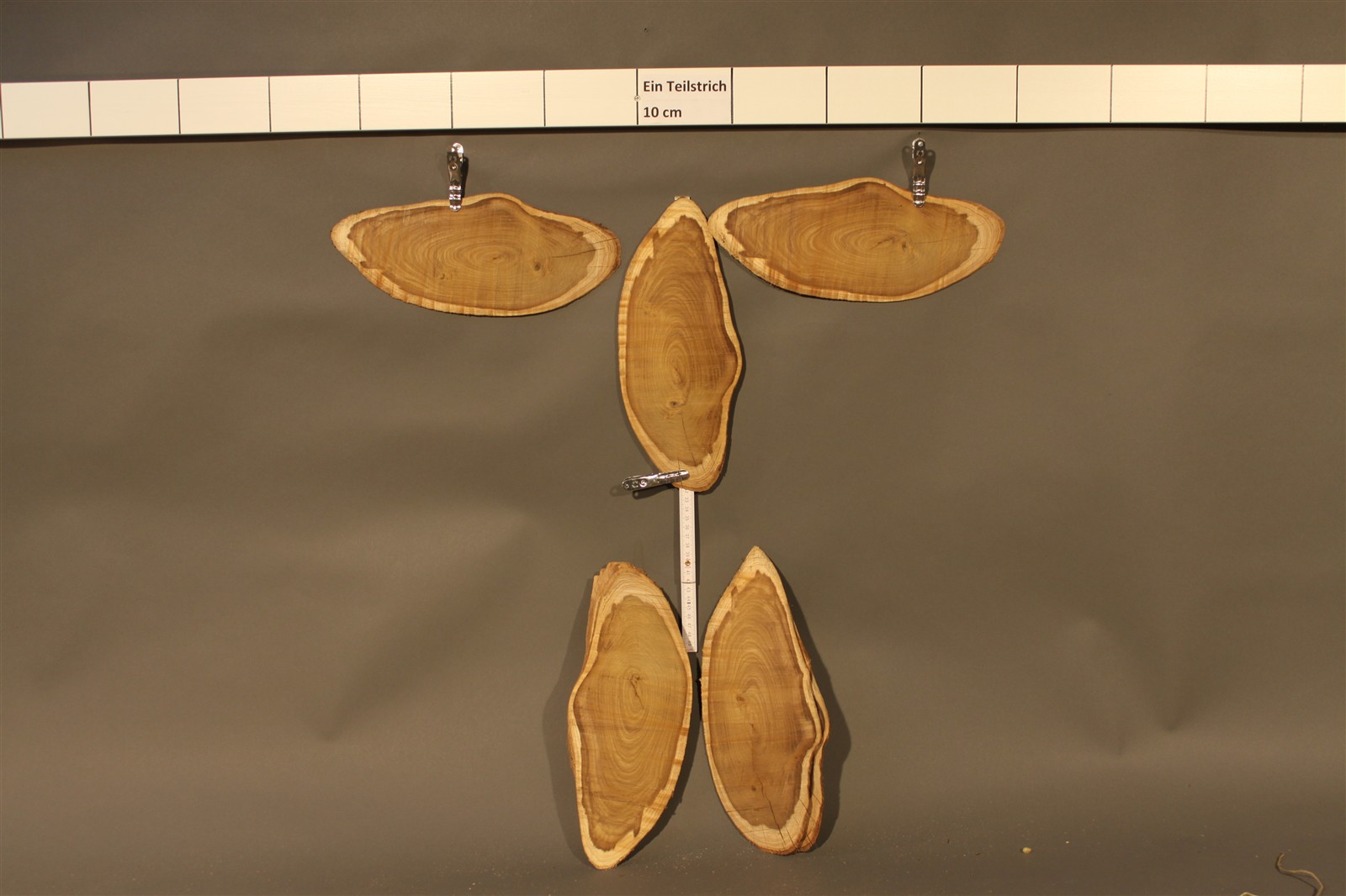 Holz ist ein Naturprodukt. Die Blätter aus einem Furnier-Paket weisen daher einen natürlichen Verlauf in Farbe und Muster auf; kein Blatt gleicht dem anderen. Die Abbildungen sind daher als Auszüge des Furnier-Pakets zu verstehen und bilden i.d.R. nur einzelne Blätter des Gesamtpakets ab.