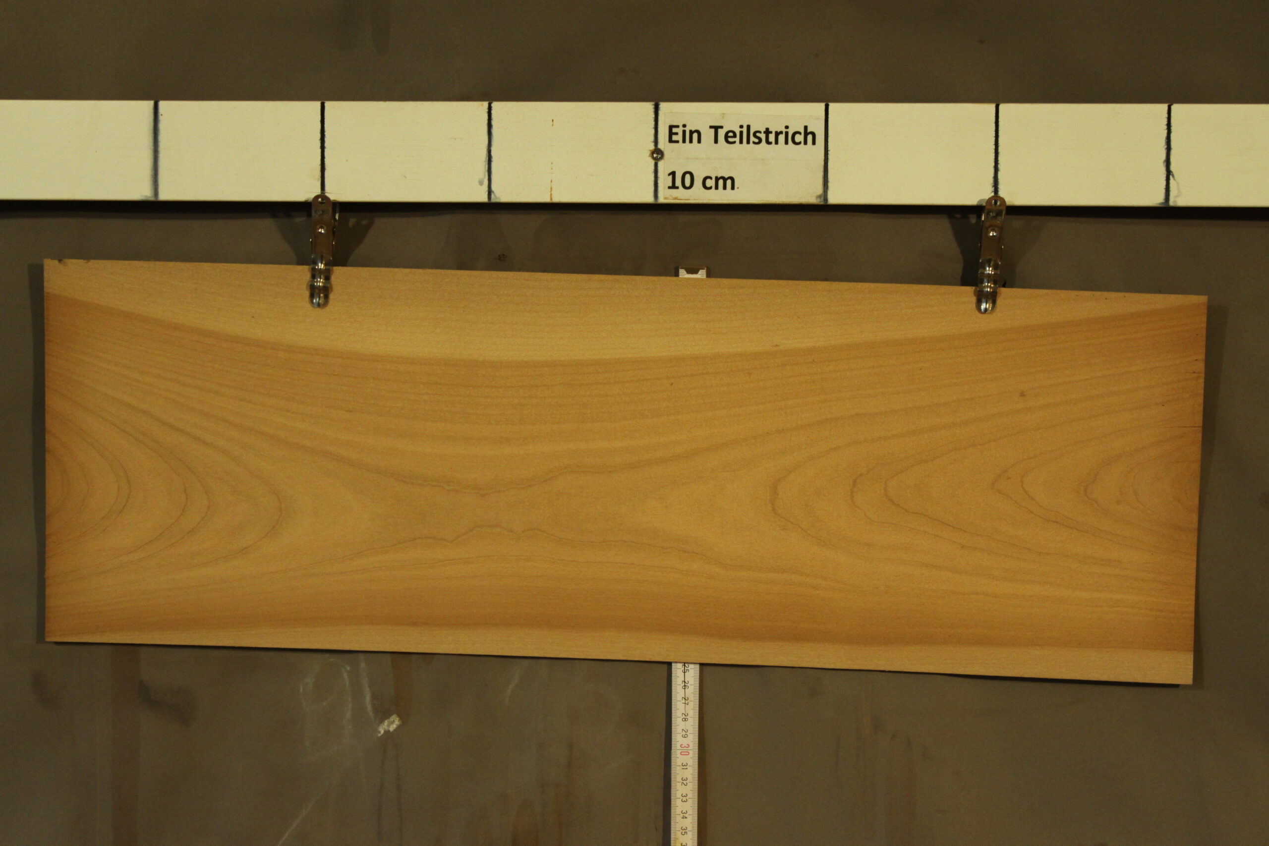 Kirschbaum-Furnier in 1,5 mm Stärke mit einer Länge von 70 cm, einer Breite von 23 cm und Sägeschnitt.