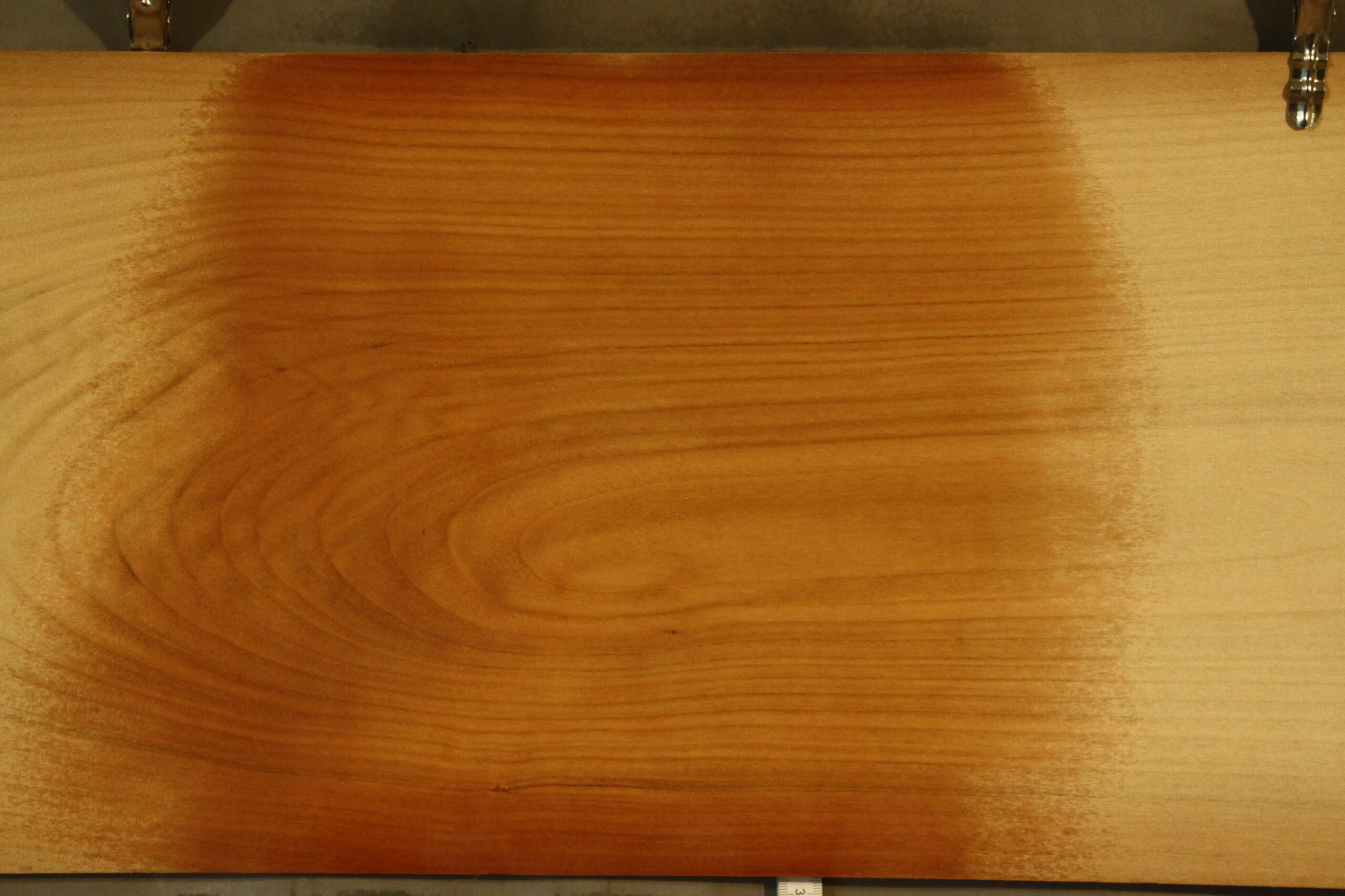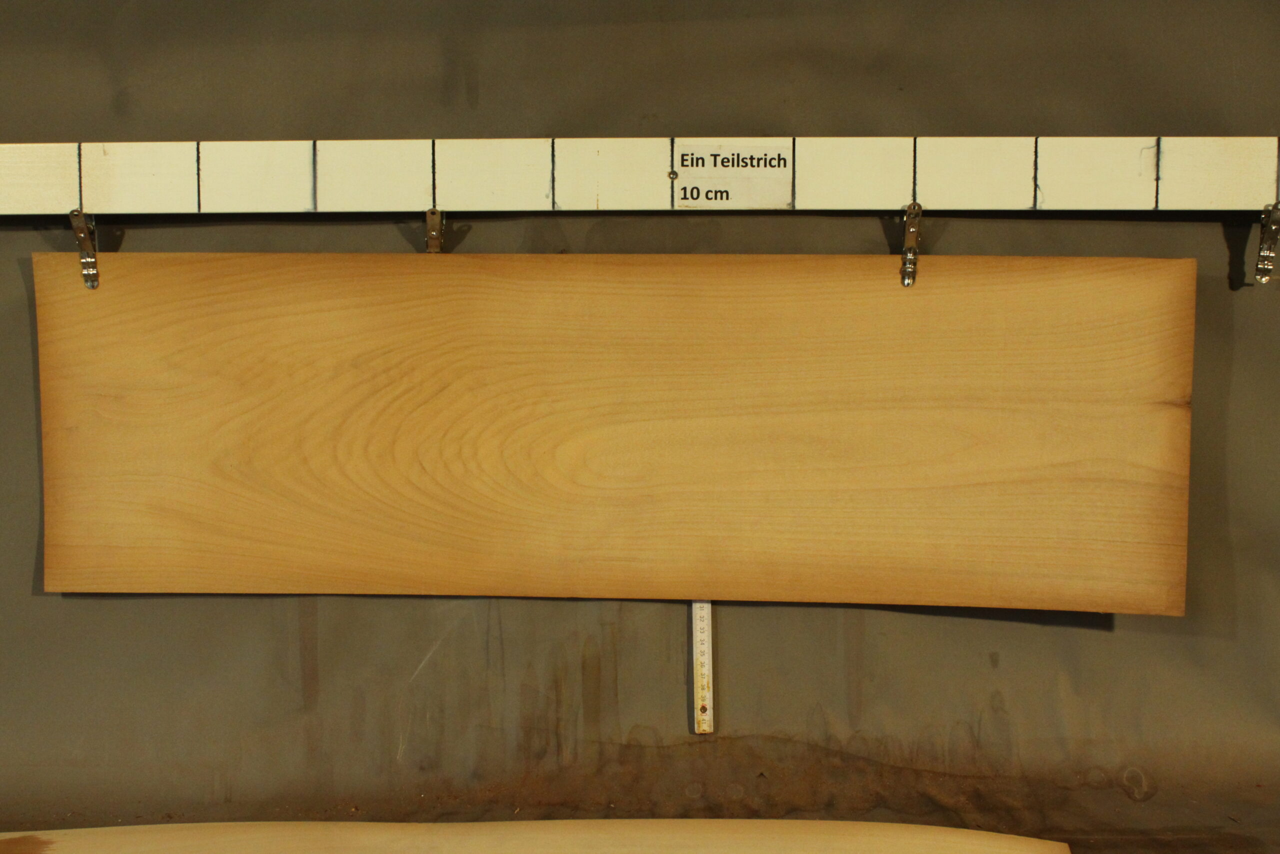 Kirschbaum-Furnier in 1,6 mm Stärke mit einer Länge von 85 cm, einer Breite von 30 cm und Sägeschnitt.