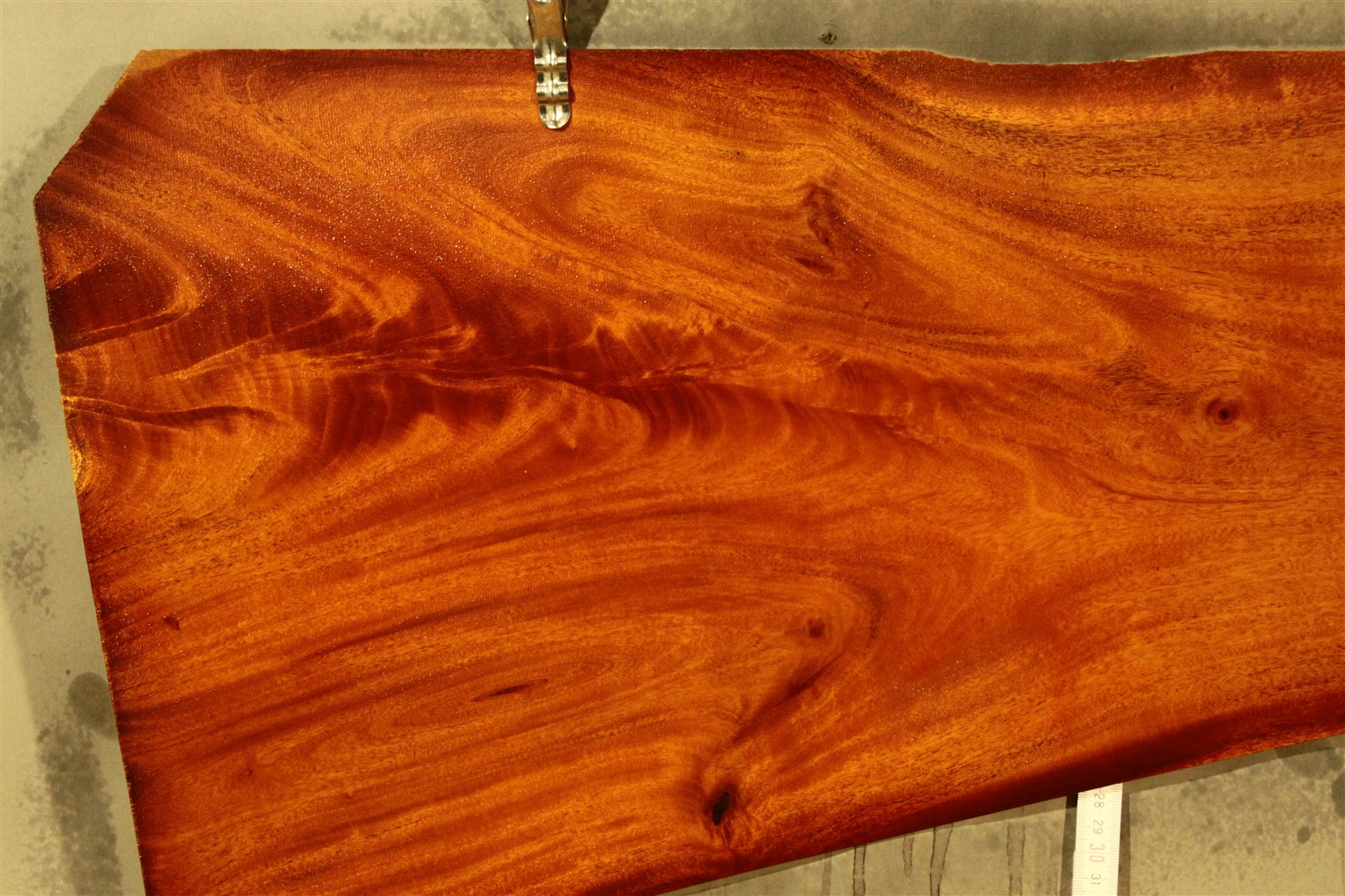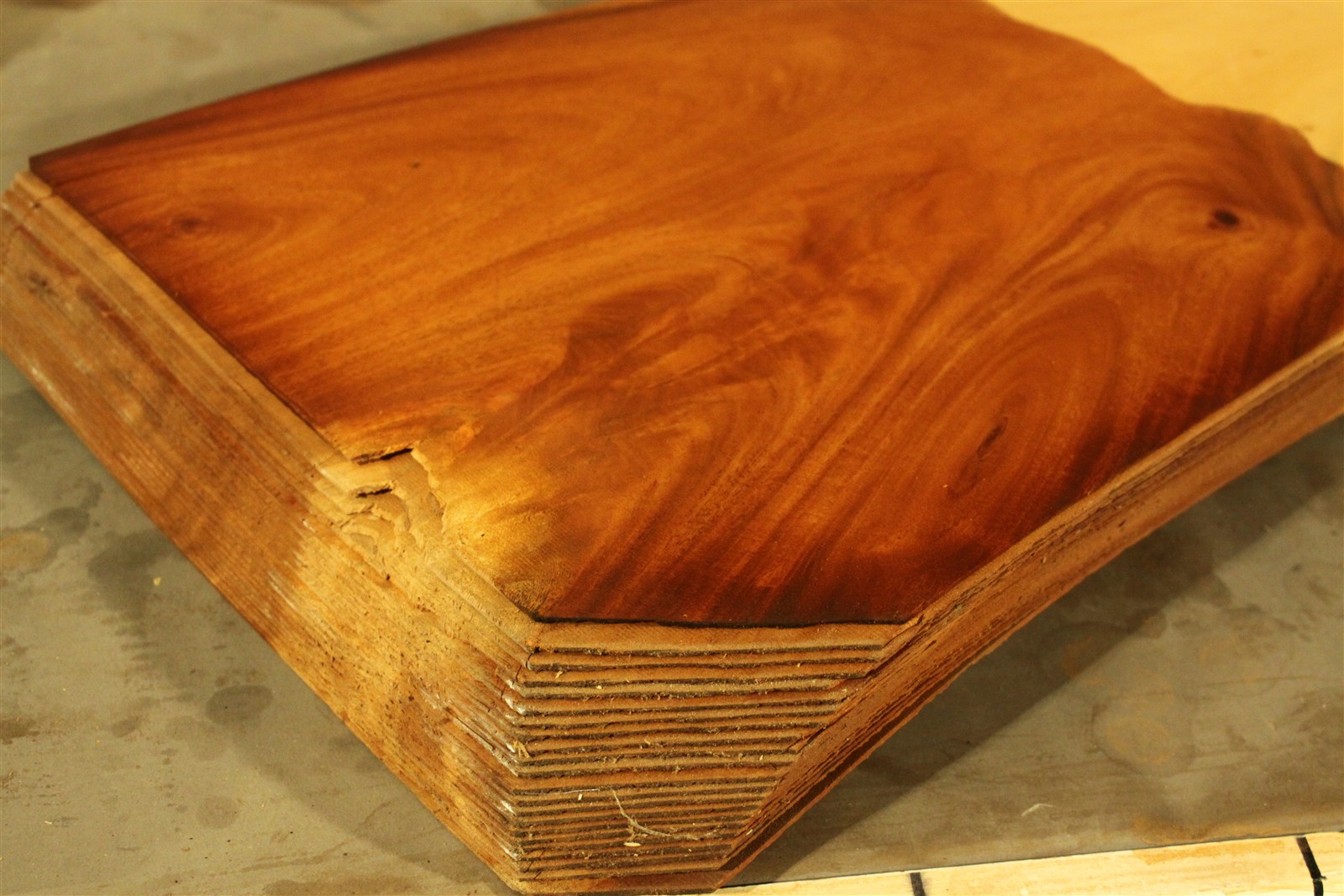 Mahagoni-Furnier Kuba in 75 cm Länge und 25 cm Breite mit einer Stärke von 1,5 mm und feinem Sägeschnitt.