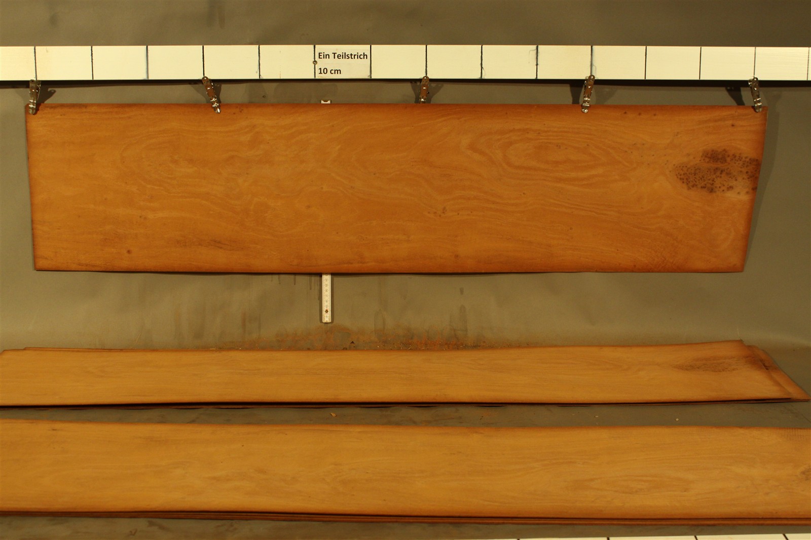 Holz ist ein Naturprodukt. Die Blätter aus einem Furnier-Paket weisen daher einen natürlichen Verlauf in Farbe und Muster auf; kein Blatt gleicht dem anderen. Die Abbildungen sind daher als Auszüge des Furnier-Pakets zu verstehen und bilden i.d.R. nur einzelne Blätter des Gesamtpakets ab.