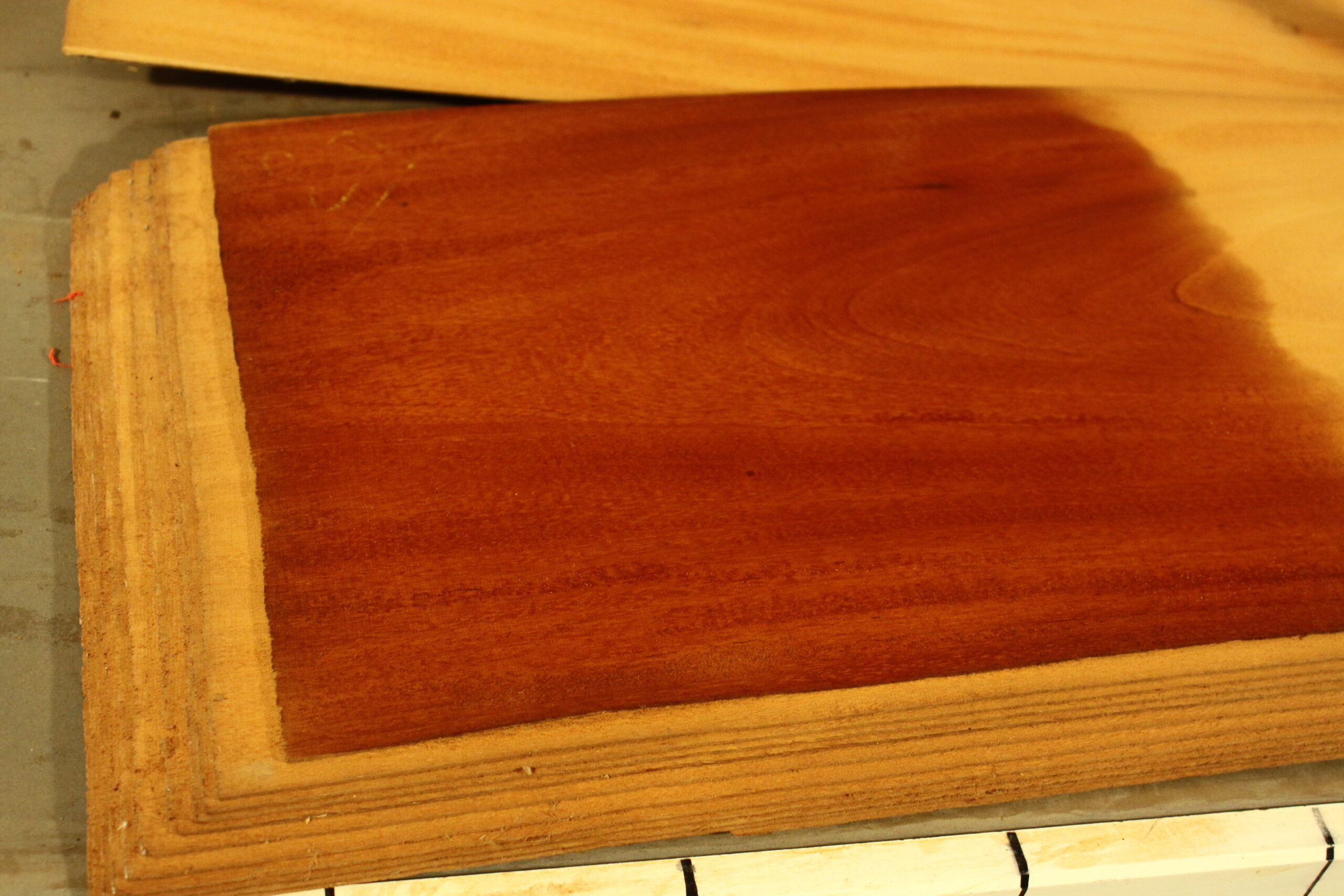 Mahagoni-Furnier Kuba in 145 cm Länge mit einer Breite von 33 cm. Das Furnier weist eine Stärke von 1,8 mm auf.