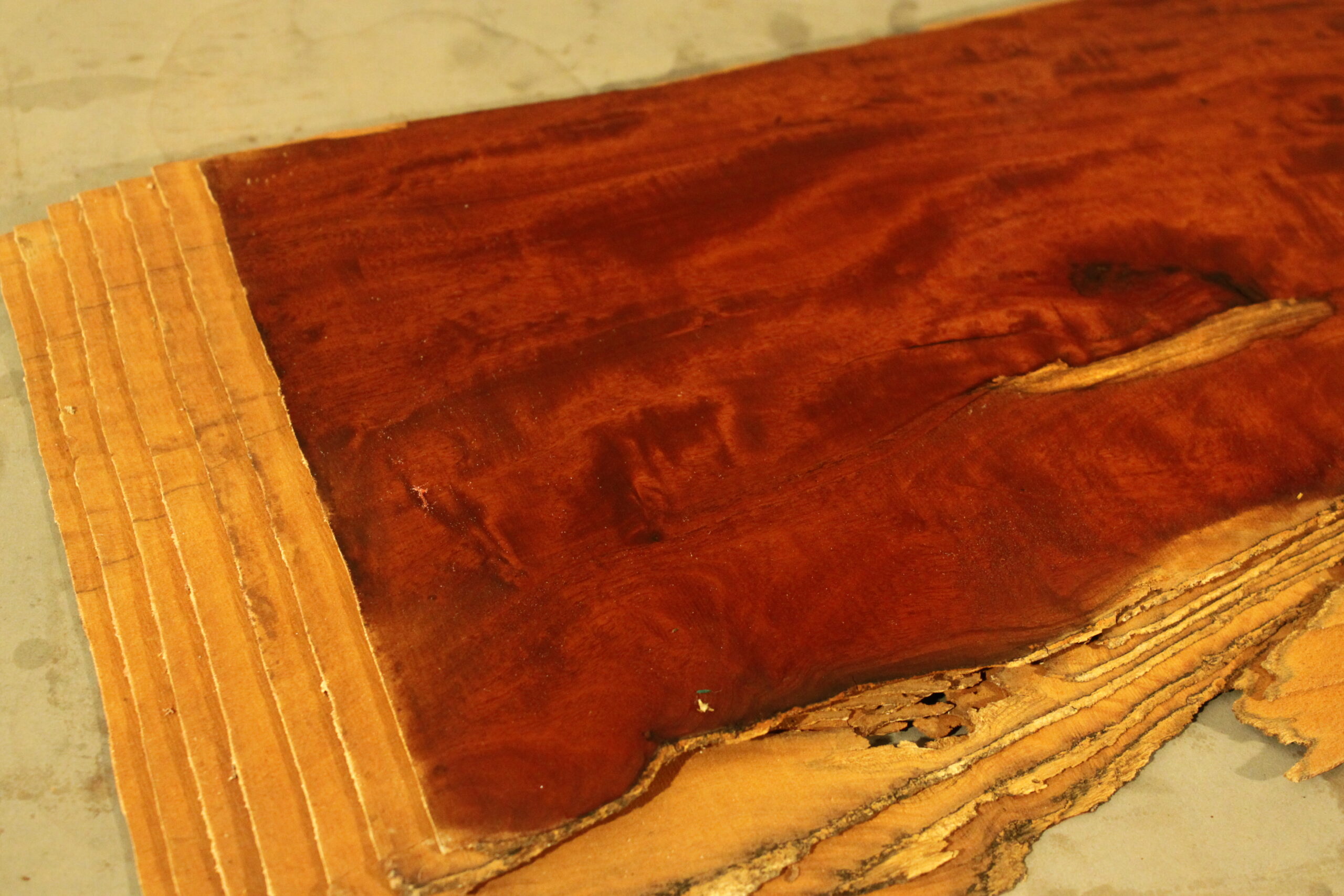 Mahagoni-Furnier Kuba in 165 cm Länge mit einer Breite von 27 cm. Das Furnier weist eine Stärke von 1,8 mm auf.