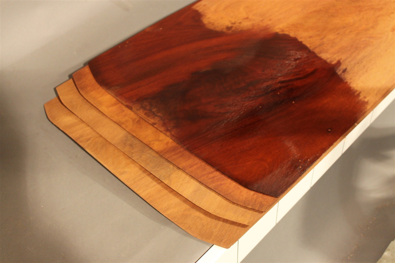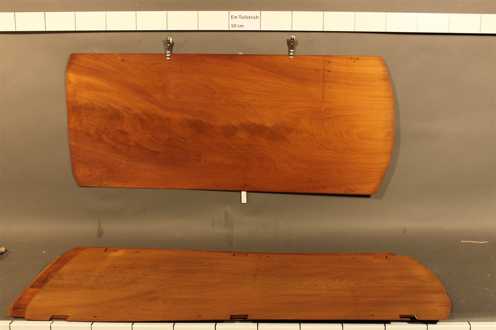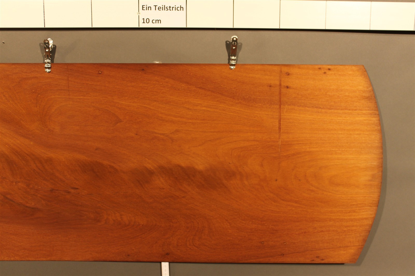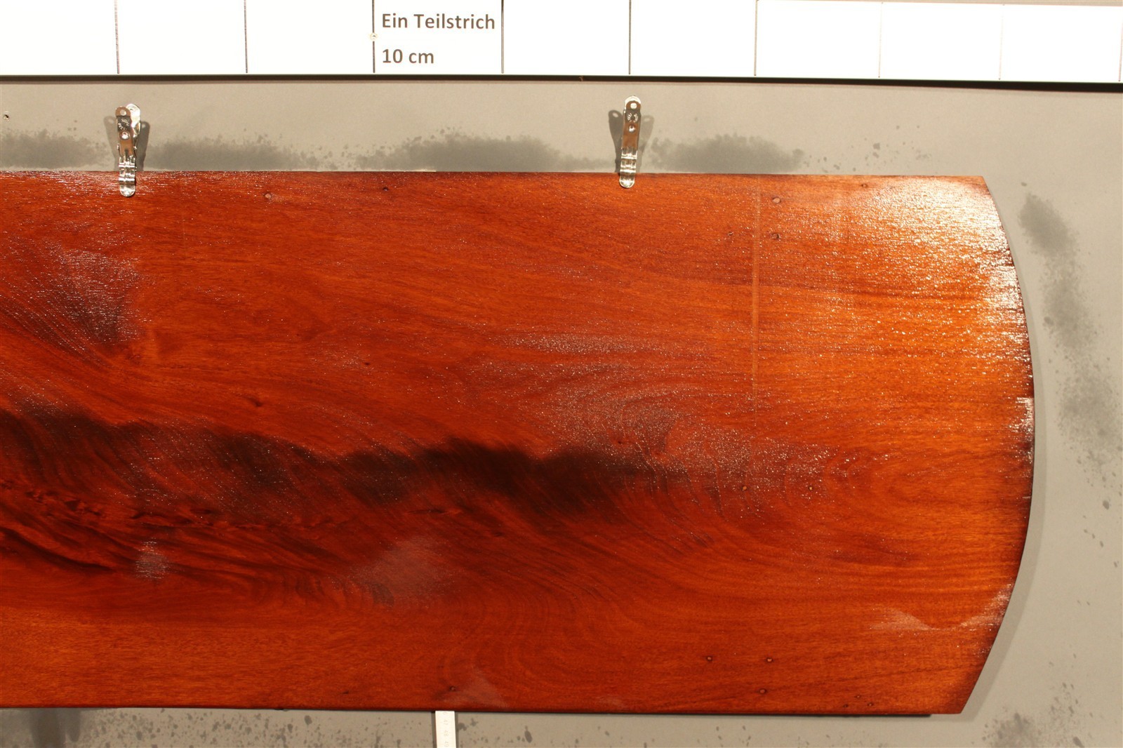 Mahagoni-Furnier Kuba geschliffen in 105 cm Länge, mit 40 cm / 45 cm Breite und einer Stärke von 2,2 mm.