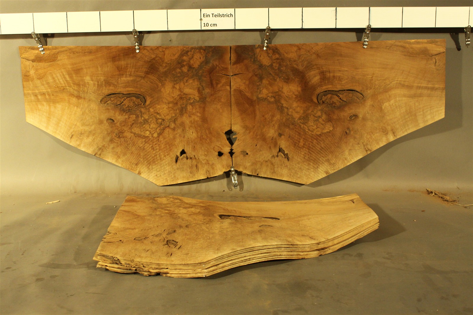 Holz ist ein Naturprodukt. Die Blätter aus einem Furnier-Paket weisen daher einen natürlichen Verlauf in Farbe und Muster auf; kein Blatt gleicht dem anderen. Die Abbildungen sind daher als Auszüge des Furnier-Pakets zu verstehen und bilden i.d.R. nur einzelne Blätter des Gesamtpakets ab.