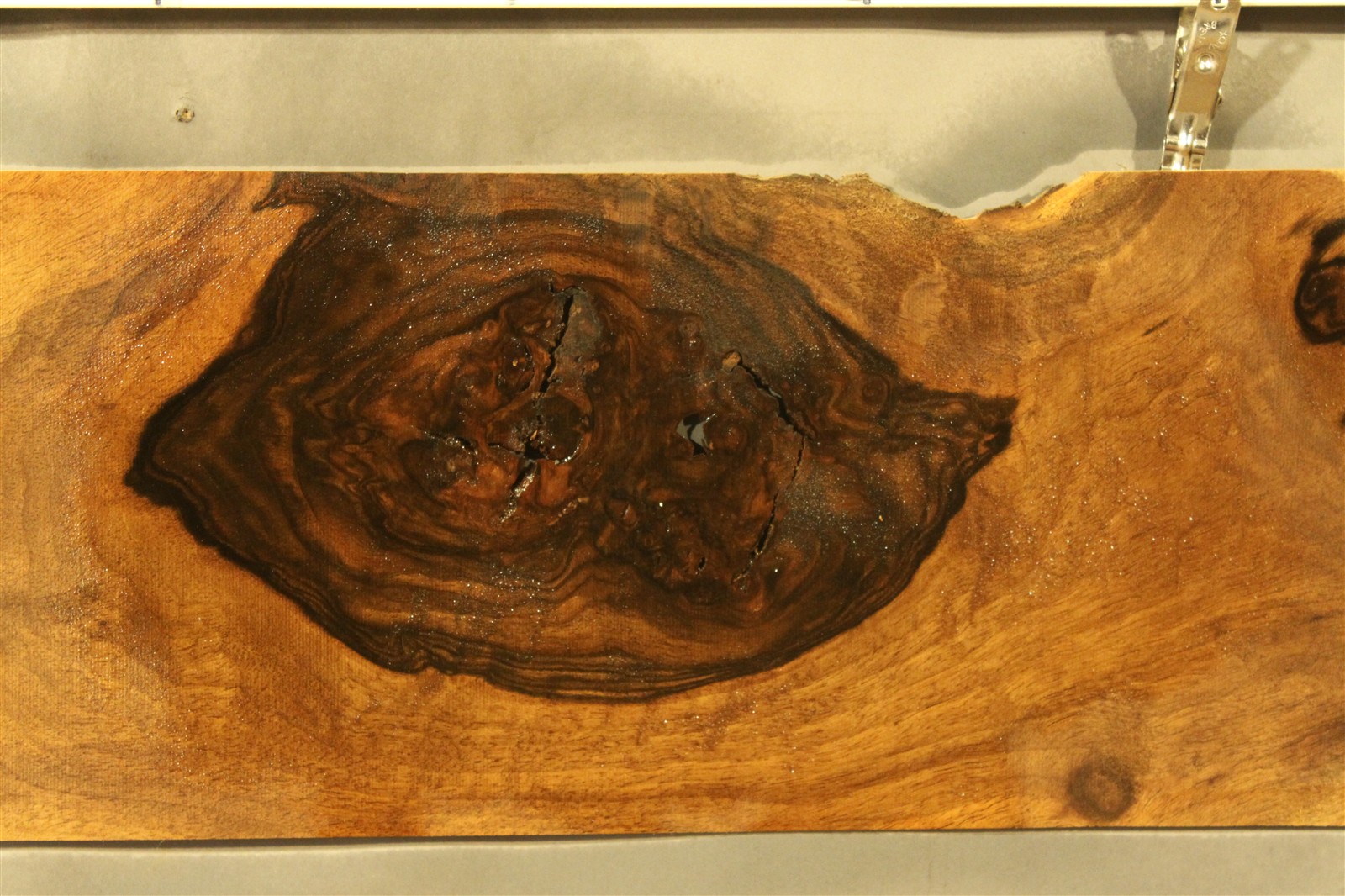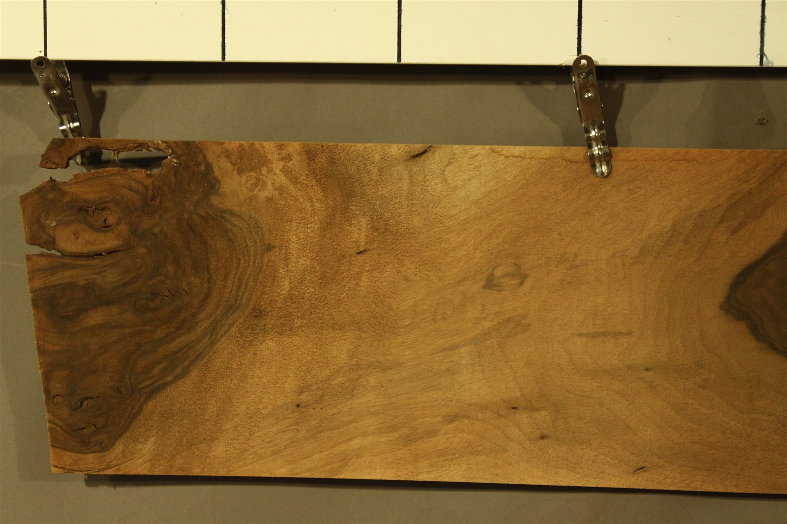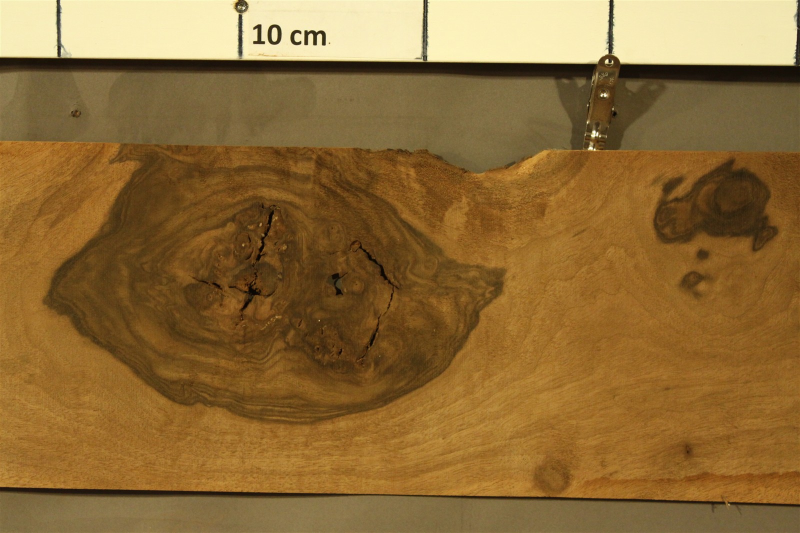 Nussbaum-Furnier in 2 mm Stärke mit einer Länge von 70 cm, einer Breite von 45 cm und Sägeschnitt.