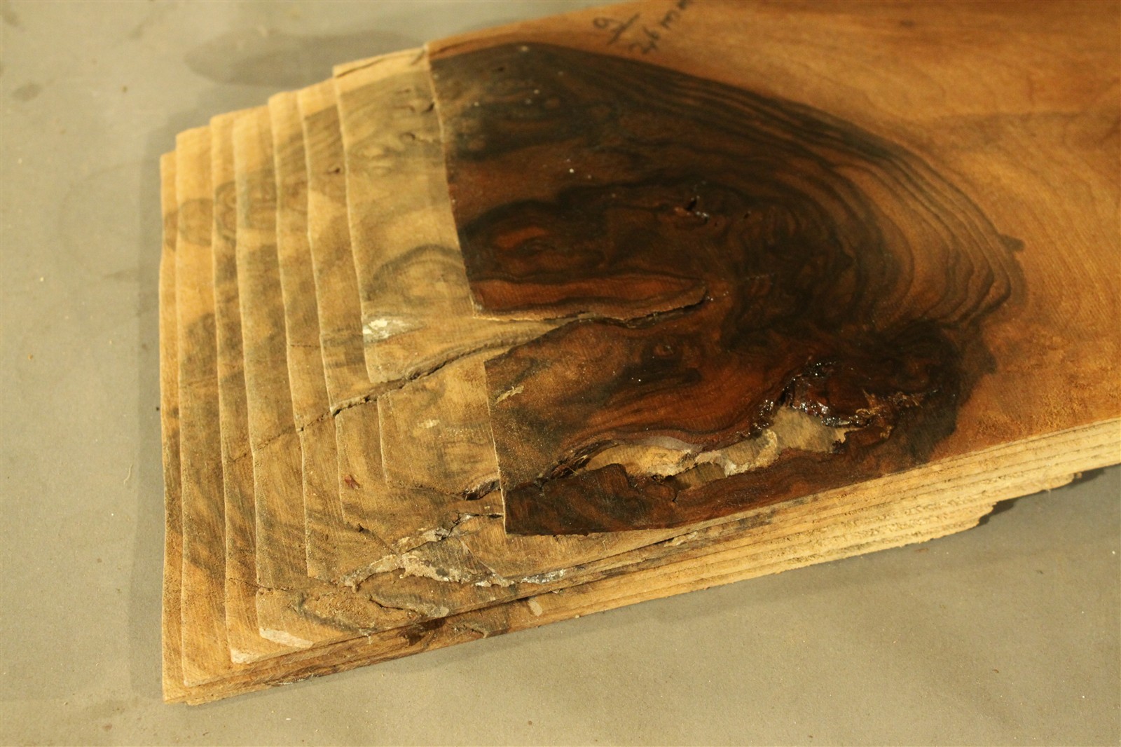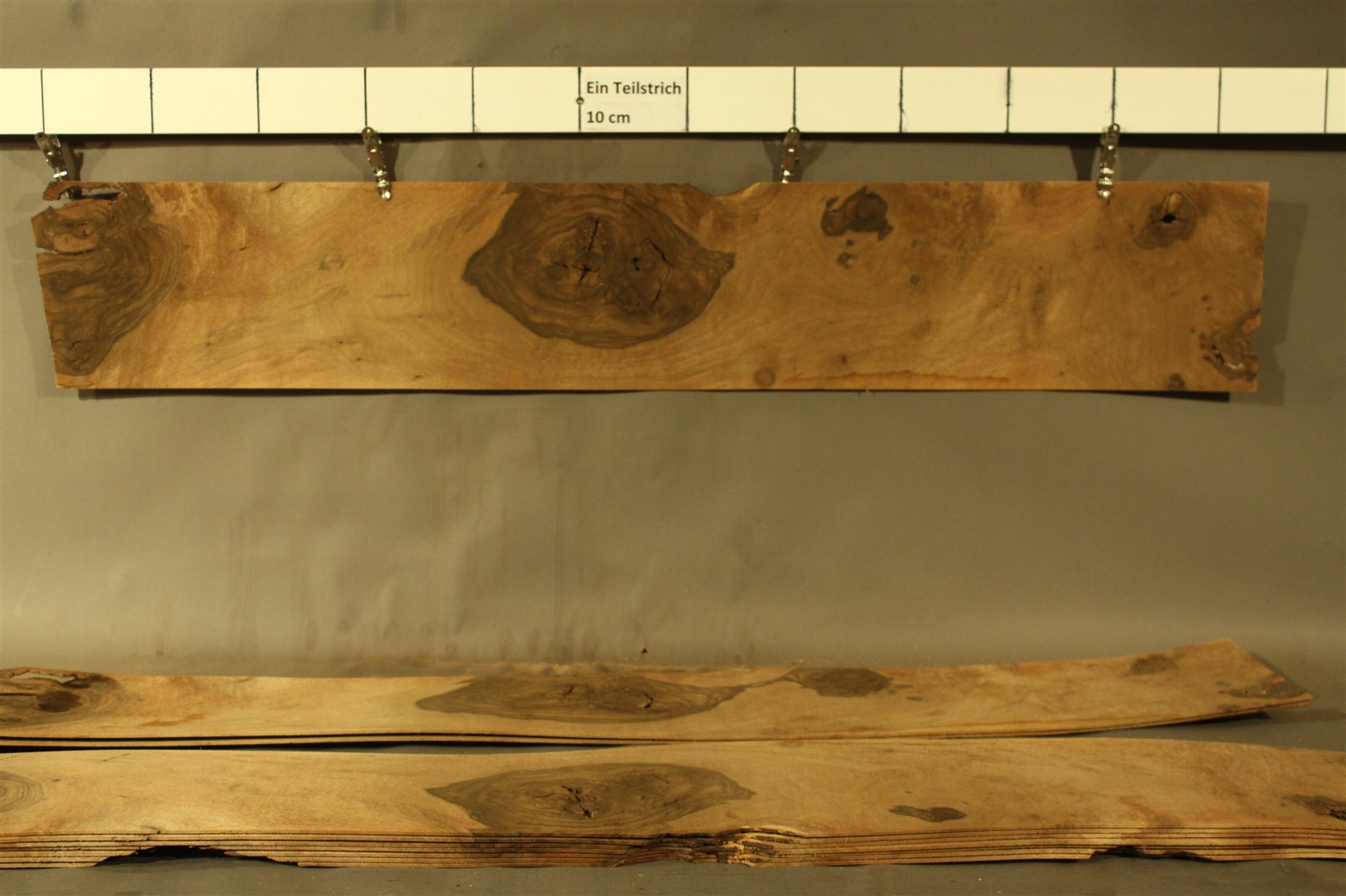 Holz ist ein Naturprodukt. Die Blätter aus einem Furnier-Paket weisen daher einen natürlichen Verlauf in Farbe und Muster auf; kein Blatt gleicht dem anderen. Die Abbildungen sind daher als Auszüge des Furnier-Pakets zu verstehen und bilden i.d.R. nur einzelne Blätter des Gesamtpakets ab.