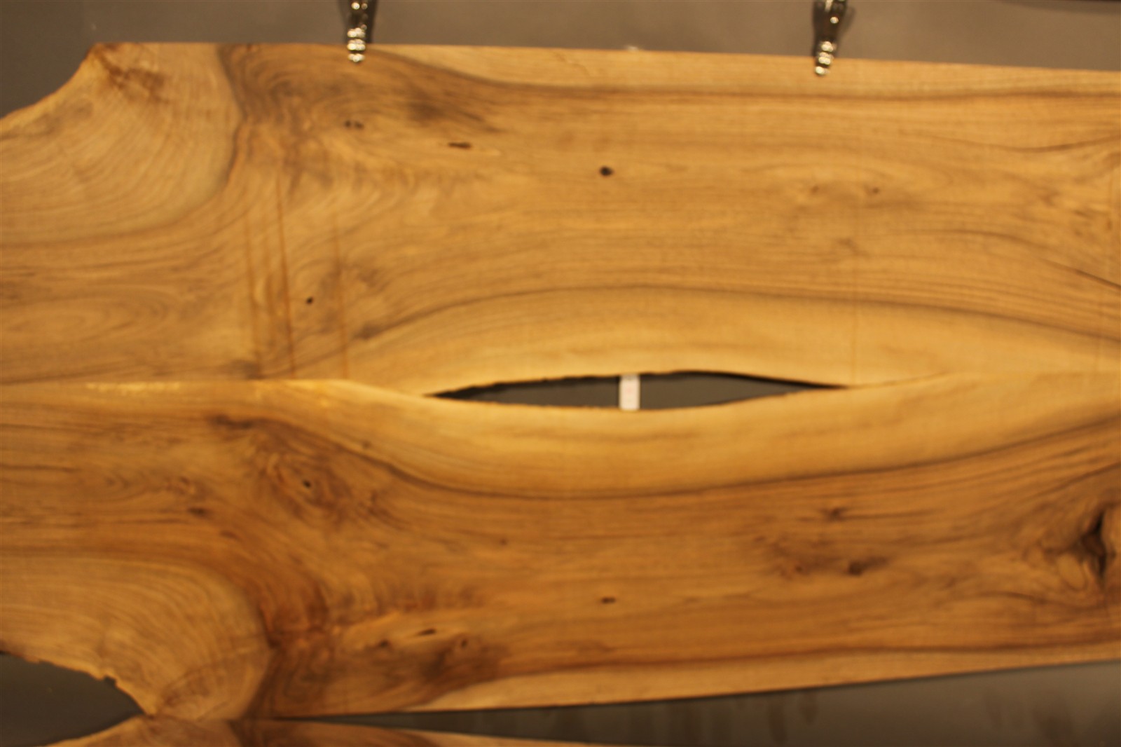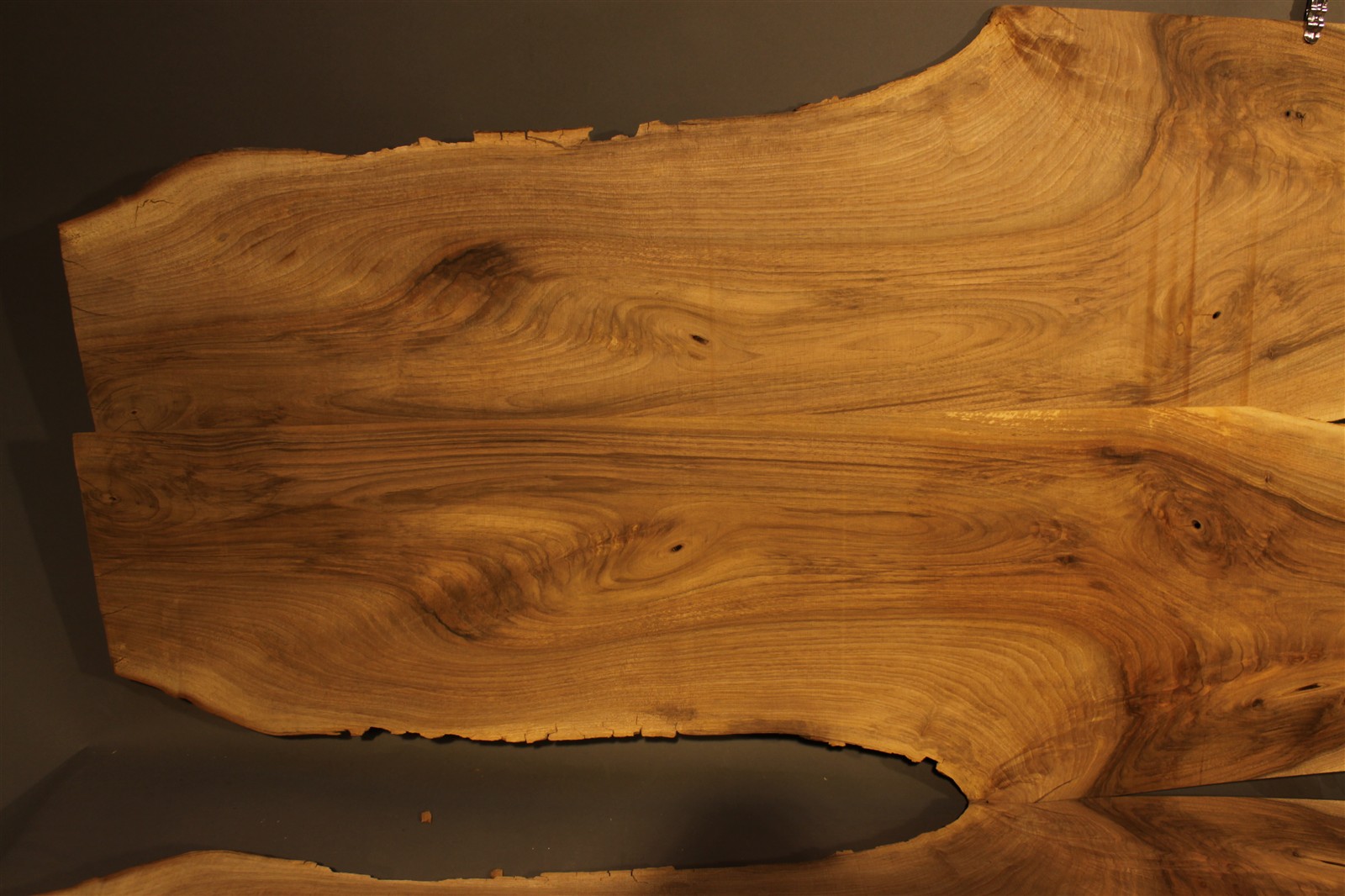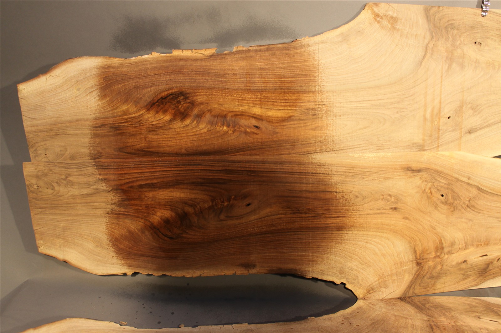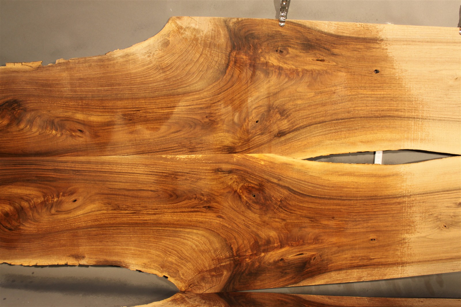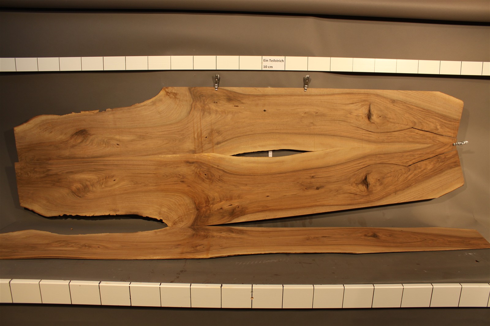 Nussbaum-Furnier in 2,5 mm Stärke mit einer Länge von 200 cm, einer Breite von 25 cm und rauem Sägeschnitt.