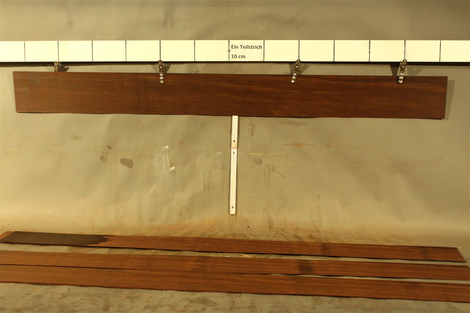 Ostindischer Palisander – Furnier in 1,5 mm Stärke mit einer Länge von 125 cm, einer Breite von 12 cm und geschliffener Oberfläche.
