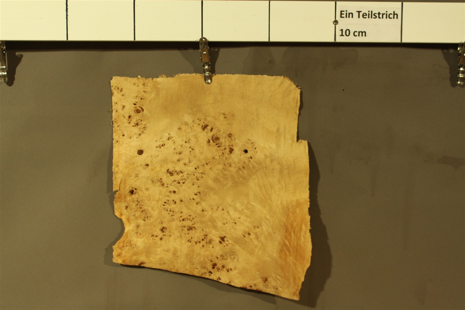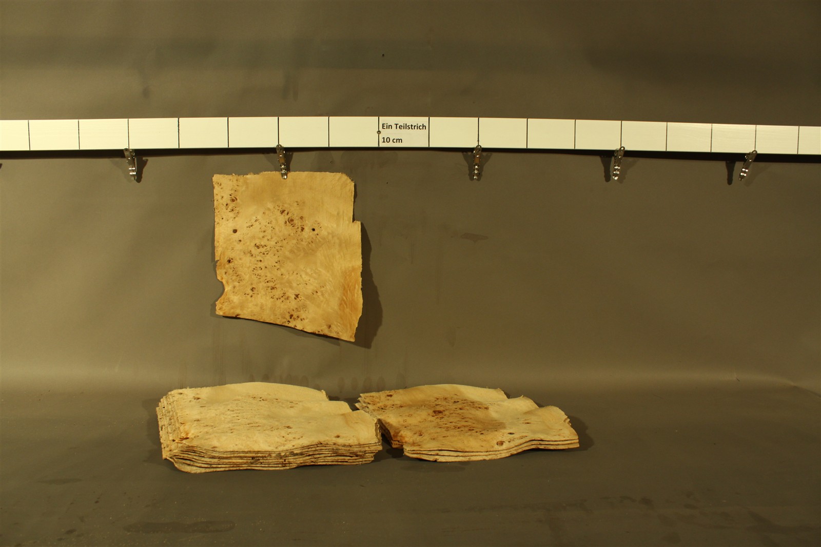 Holz ist ein Naturprodukt. Die Blätter aus einem Furnier-Paket weisen daher einen natürlichen Verlauf in Farbe und Muster auf; kein Blatt gleicht dem anderen. Die Abbildungen sind daher als Auszüge des Furnier-Pakets zu verstehen und bilden i.d.R. nur einzelne Blätter des Gesamtpakets ab.