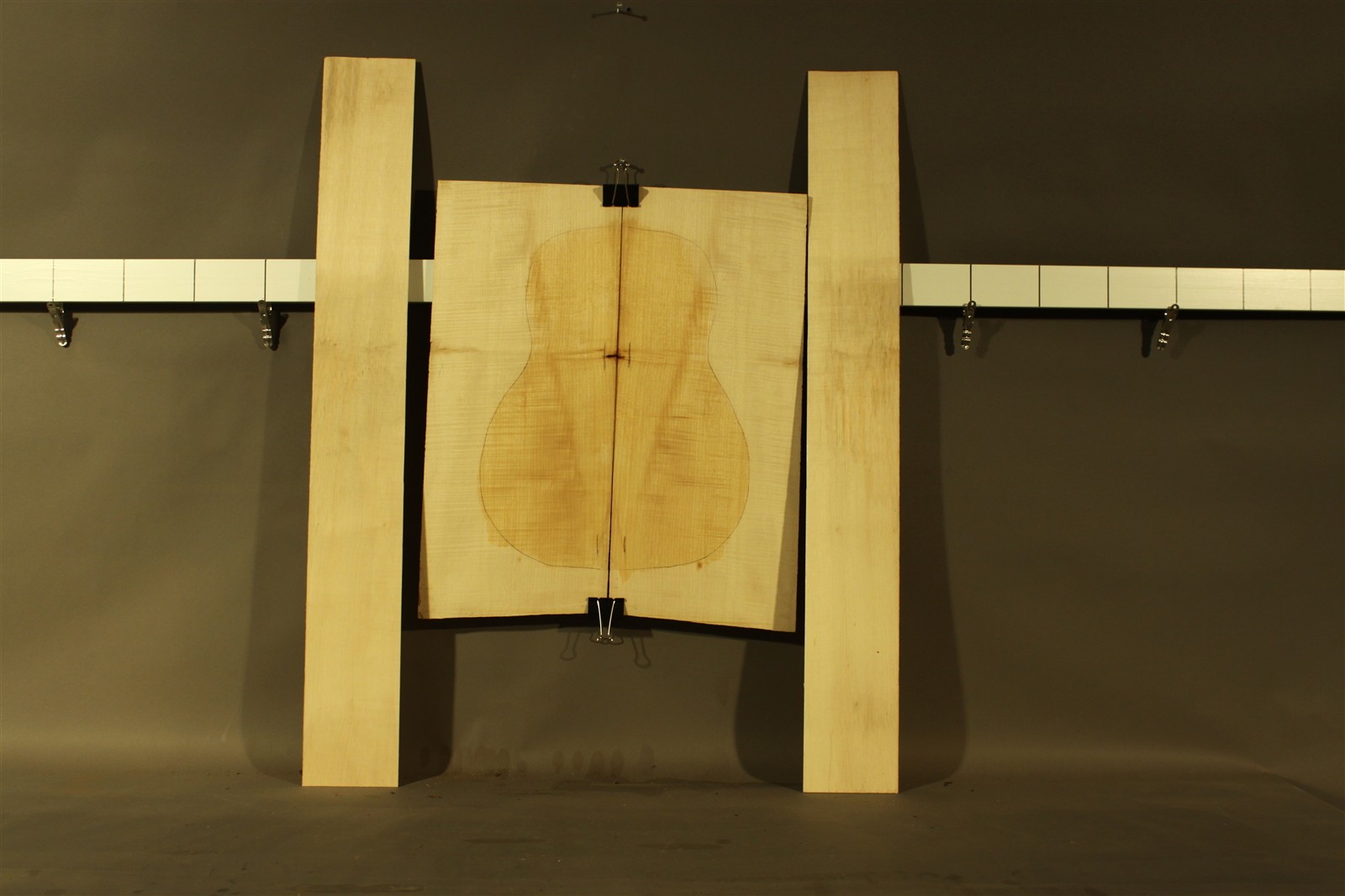 Riegelahorn-Furnier, jeweils zwei Blatt in 4mm-Stärke mit den Maßen 55 x 24 cm und zwei Blatt in 3,5mm-Stärke mit den Maßen 100 x 12,5 cm – als passendes Set für Gitarrenbau / Instrumentenbau (Akustik). Das Tonholz ist einseitig geschliffen (K36). Der angegebene Preis bezieht sich auf alle vier Blätter bzw. das abgebildete Set.
