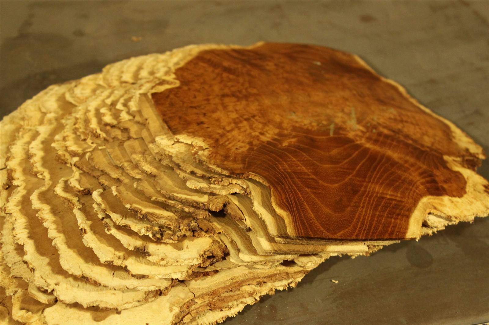Robinie-Furnier in 2 mm Stärke mit einem Durchmesser von 23 cm und feinem Sägeschnitt.