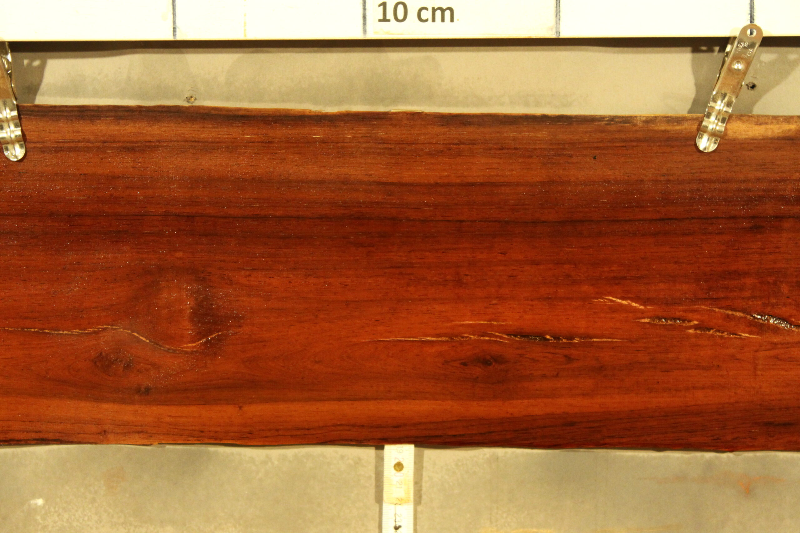Santos Palisander-Furnier in 1,5 mm Stärke mit einer Länge von 85 cm, einer Breite von 18 cm und feinem Sägeschnitt.