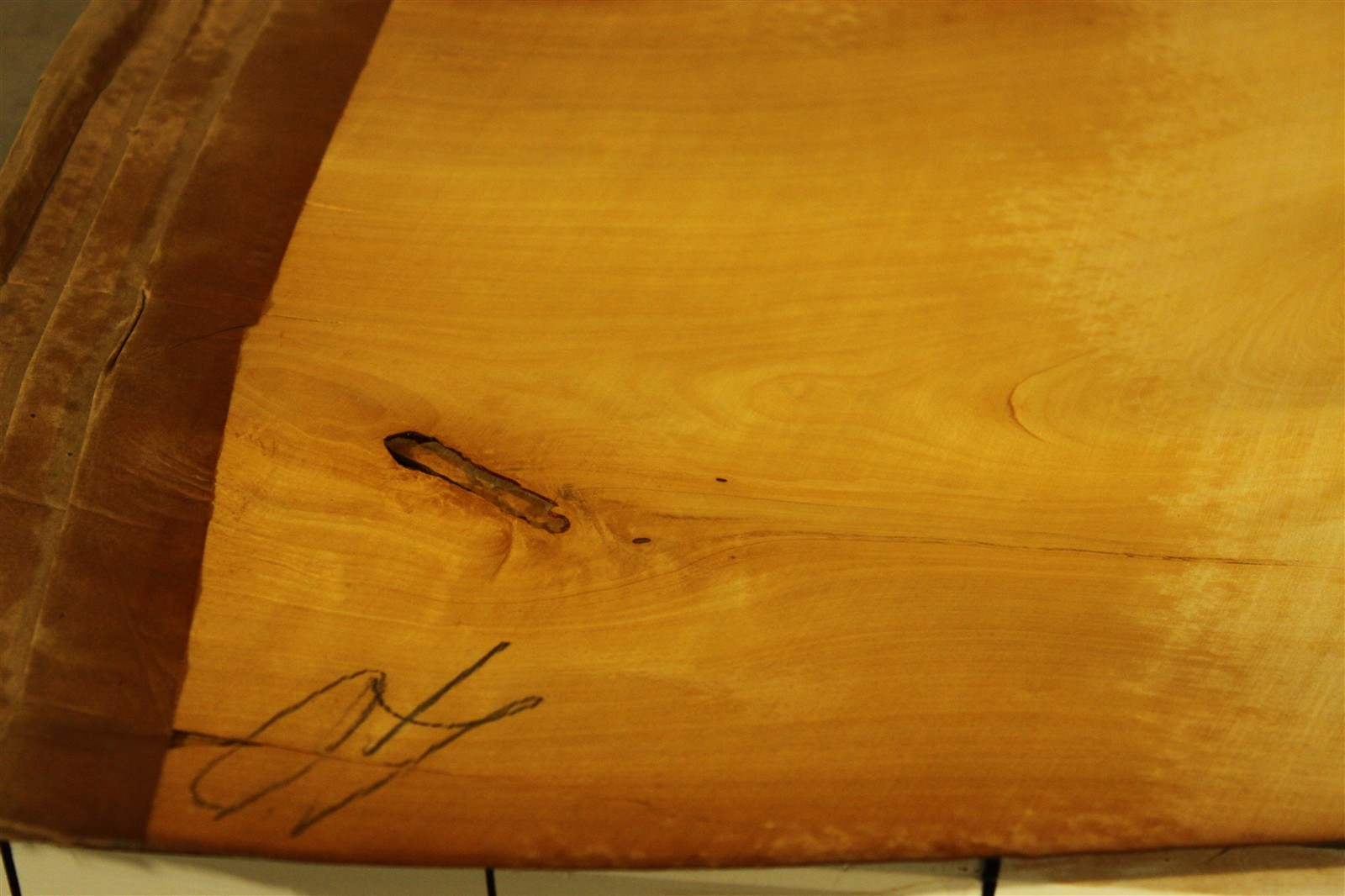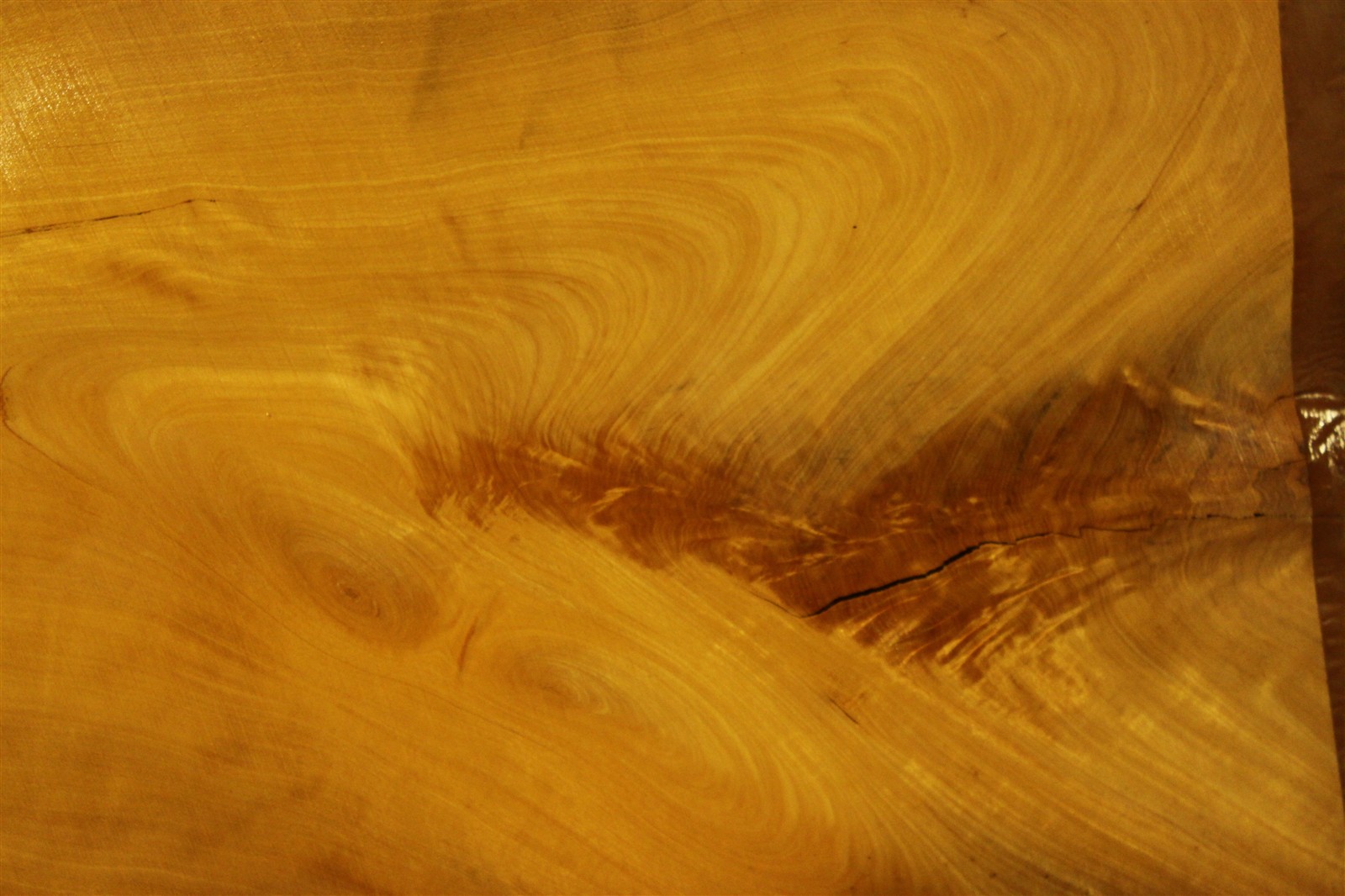 Satinholz-Furnier / Zitronen-Furnier in 1 mm Stärke mit einer Länge von 65 cm, einer Breite von 35 cm und feinem Sägeschnitt.