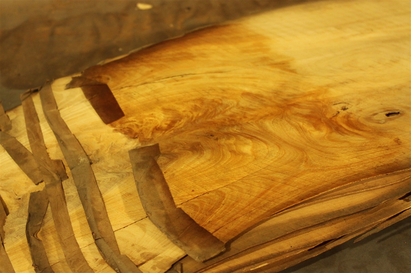 Holz ist ein Naturprodukt. Die Blätter aus einem Furnier-Paket weisen daher einen natürlichen Verlauf in Farbe und Muster auf; kein Blatt gleicht dem anderen. Die Abbildungen sind daher als Auszüge des Furnier-Pakets zu verstehen und bilden i.d.R. nur einzelne Blätter des Gesamtpakets ab.