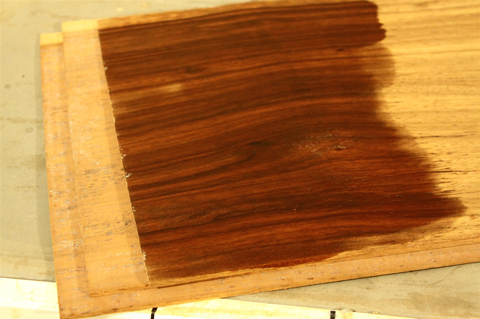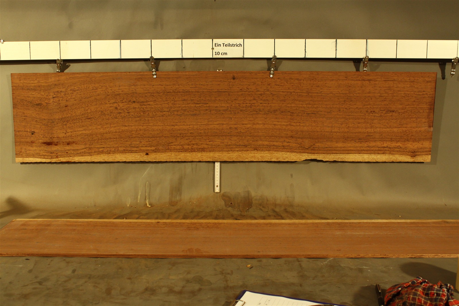 Tchitola-Furnier in 2,5 mm Stärke mit einer Länge von 140 cm, einer Breite von 30 cm und feinem Sägeschnitt.